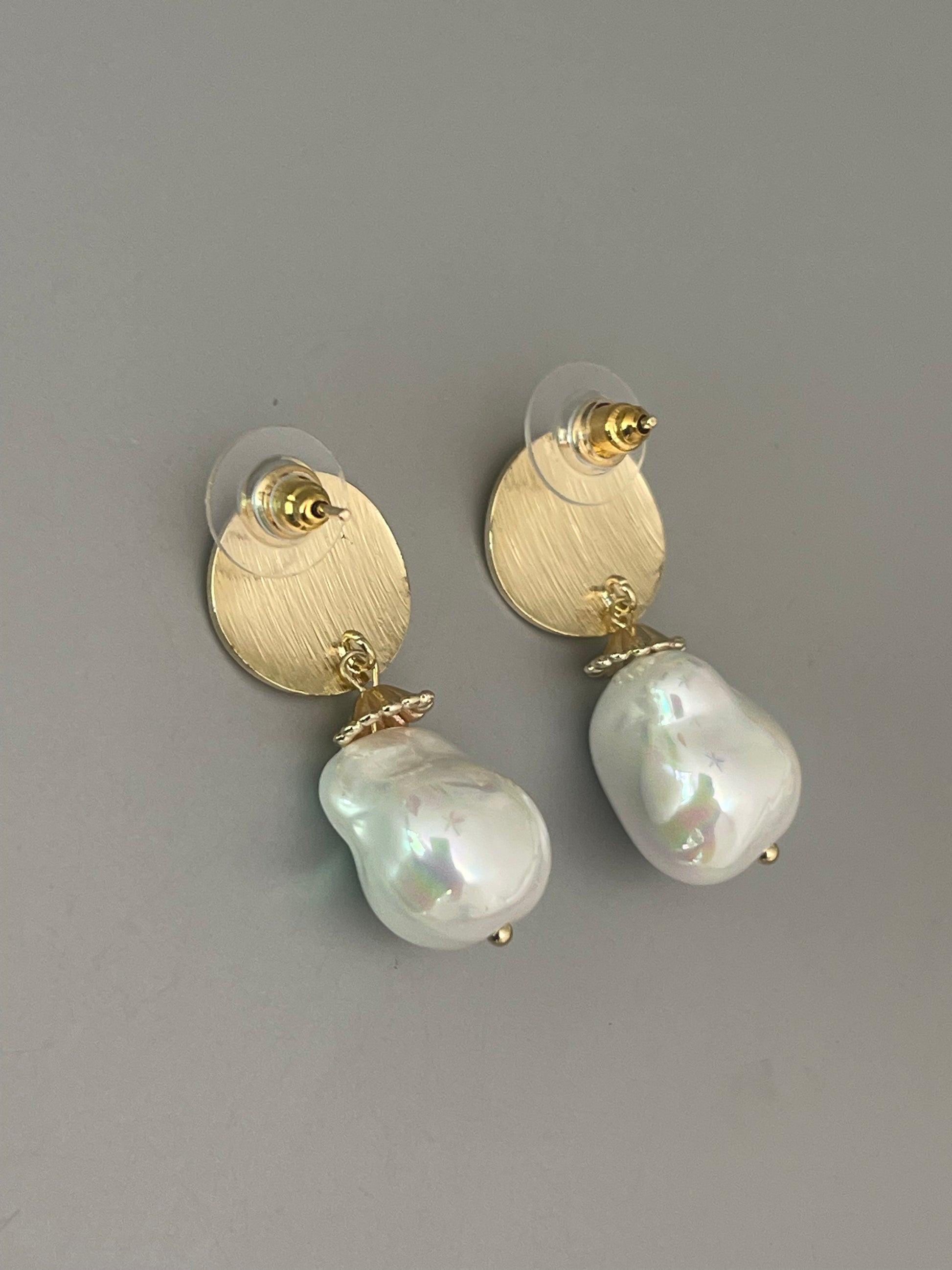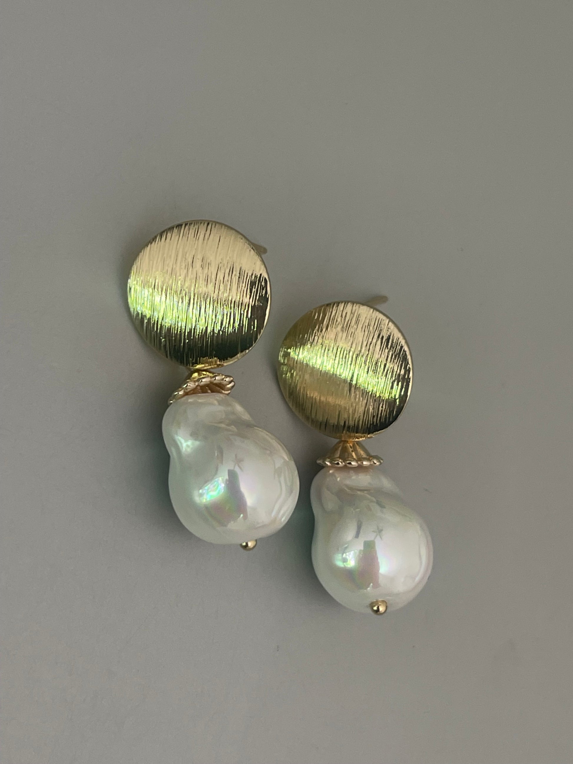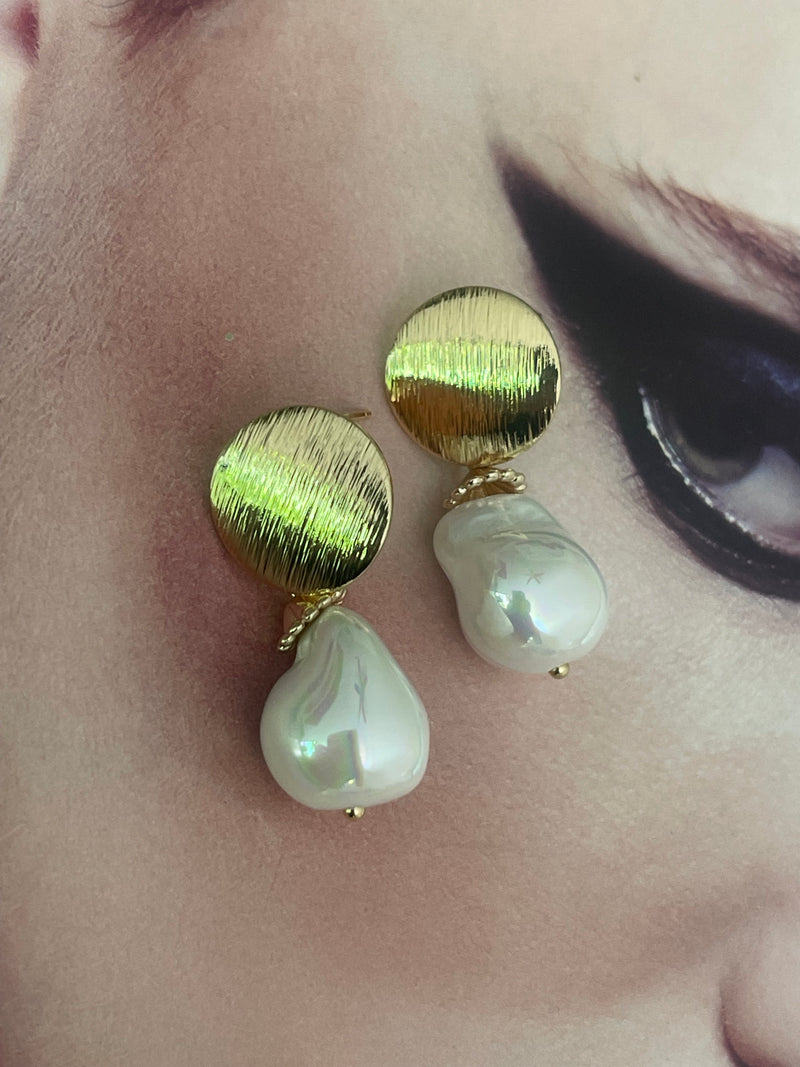 Aros Hippie Chic bañados en oro con elegante perla barroca blanca natural con un precioso esmaltado. Largo 3.7 cm.