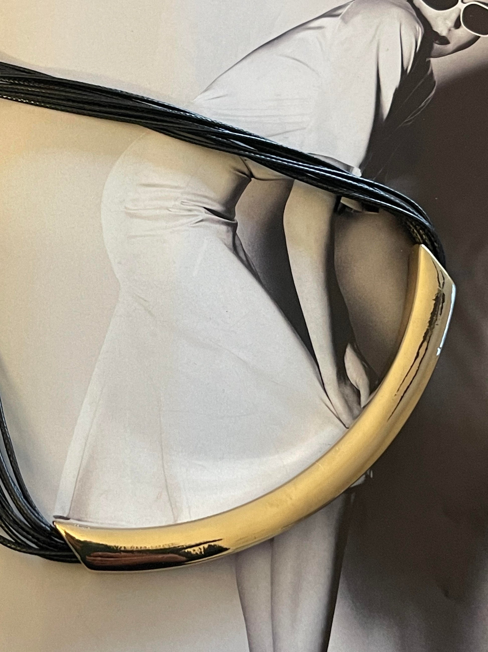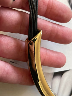 Collar Hippie Chic con fino detalle en dorado y cuerda negra.