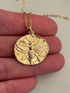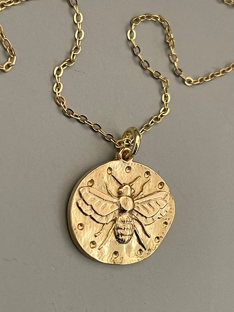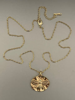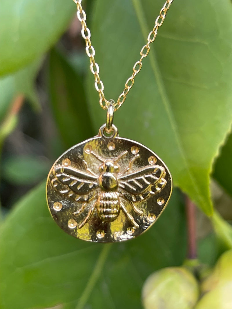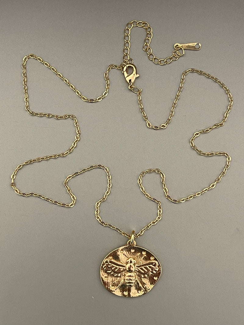 Collar Hippie Chic corto bañado en oro con precioso colgante de abeja.