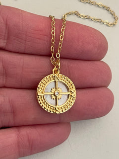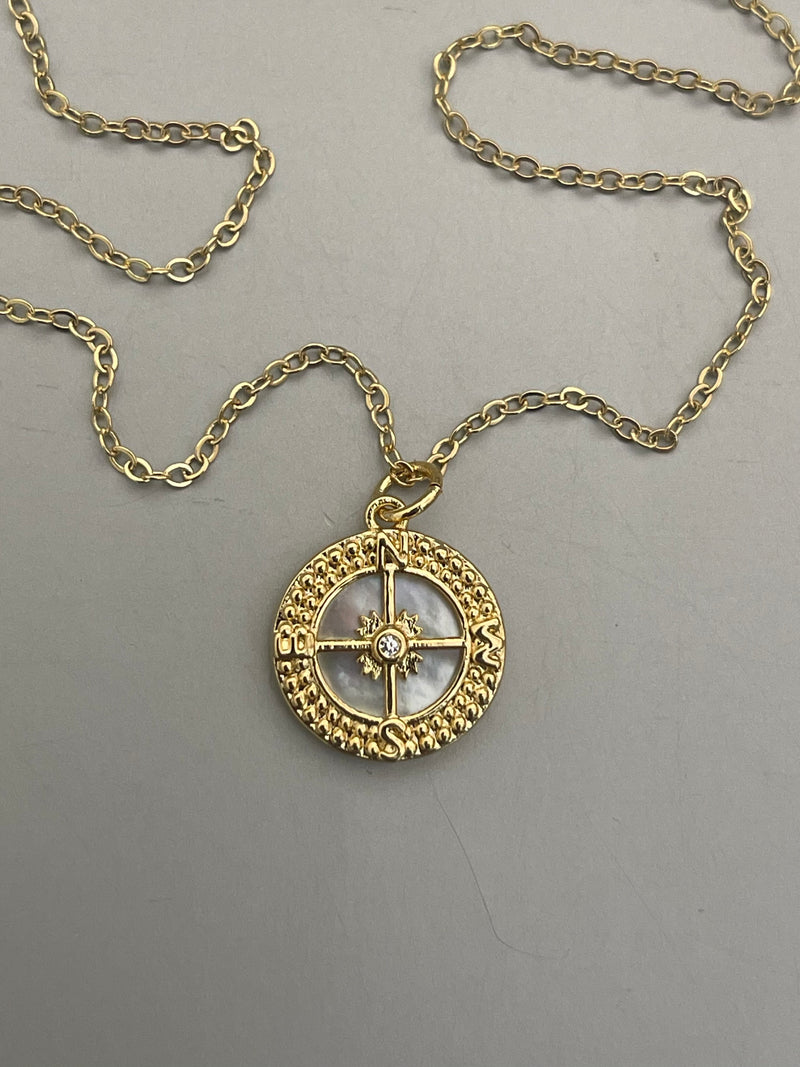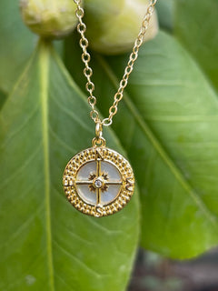Collar Hippie Chic corto bañado en oro con precioso colgante de nacar natural y elegante diseño.