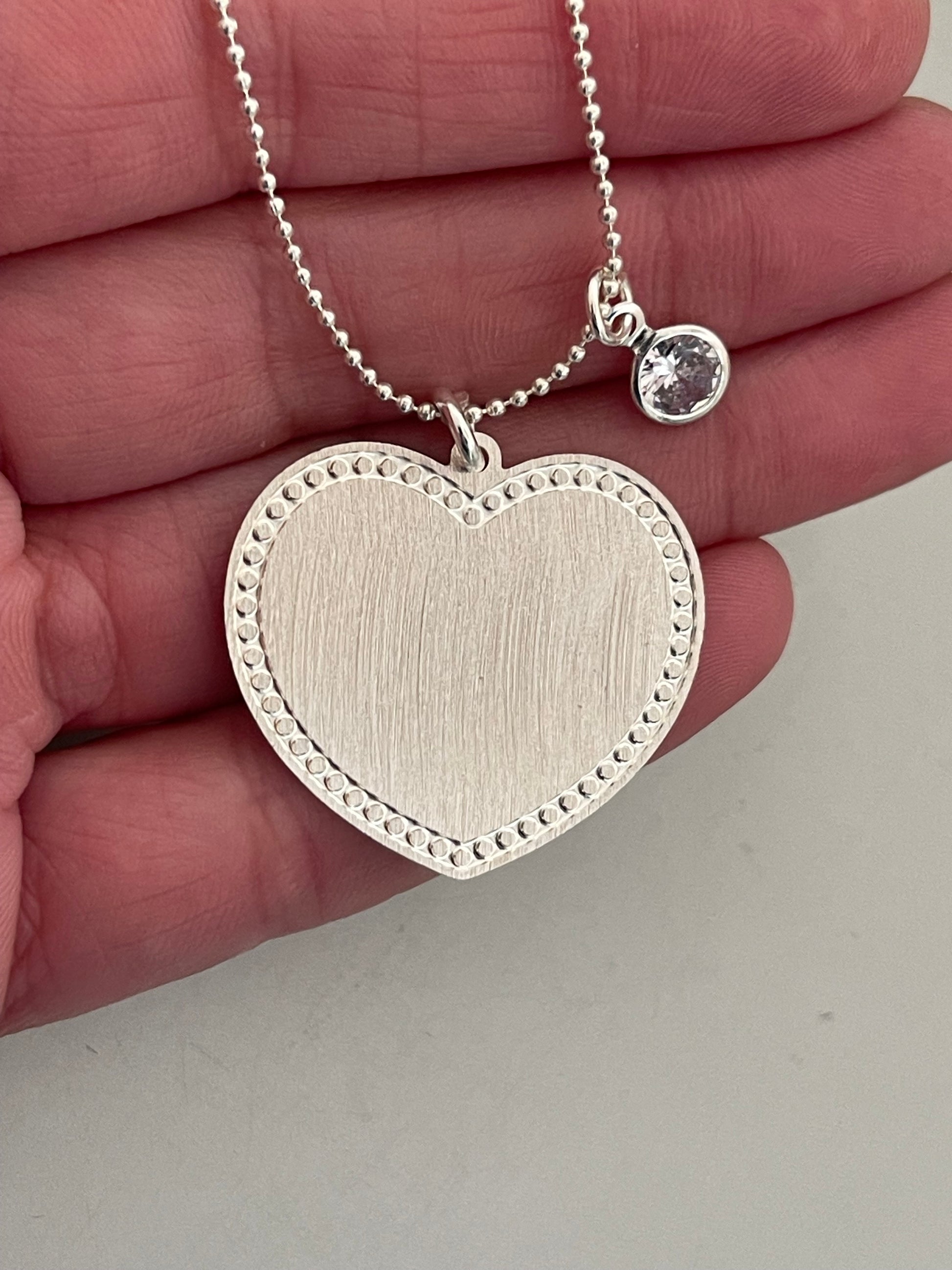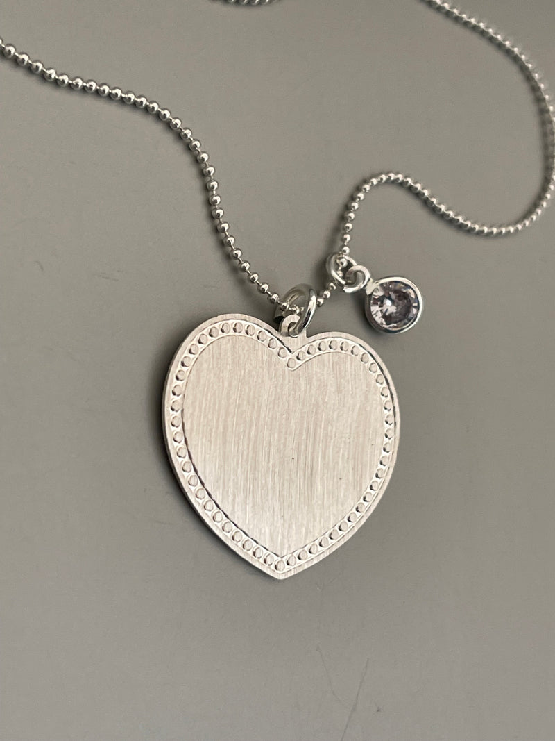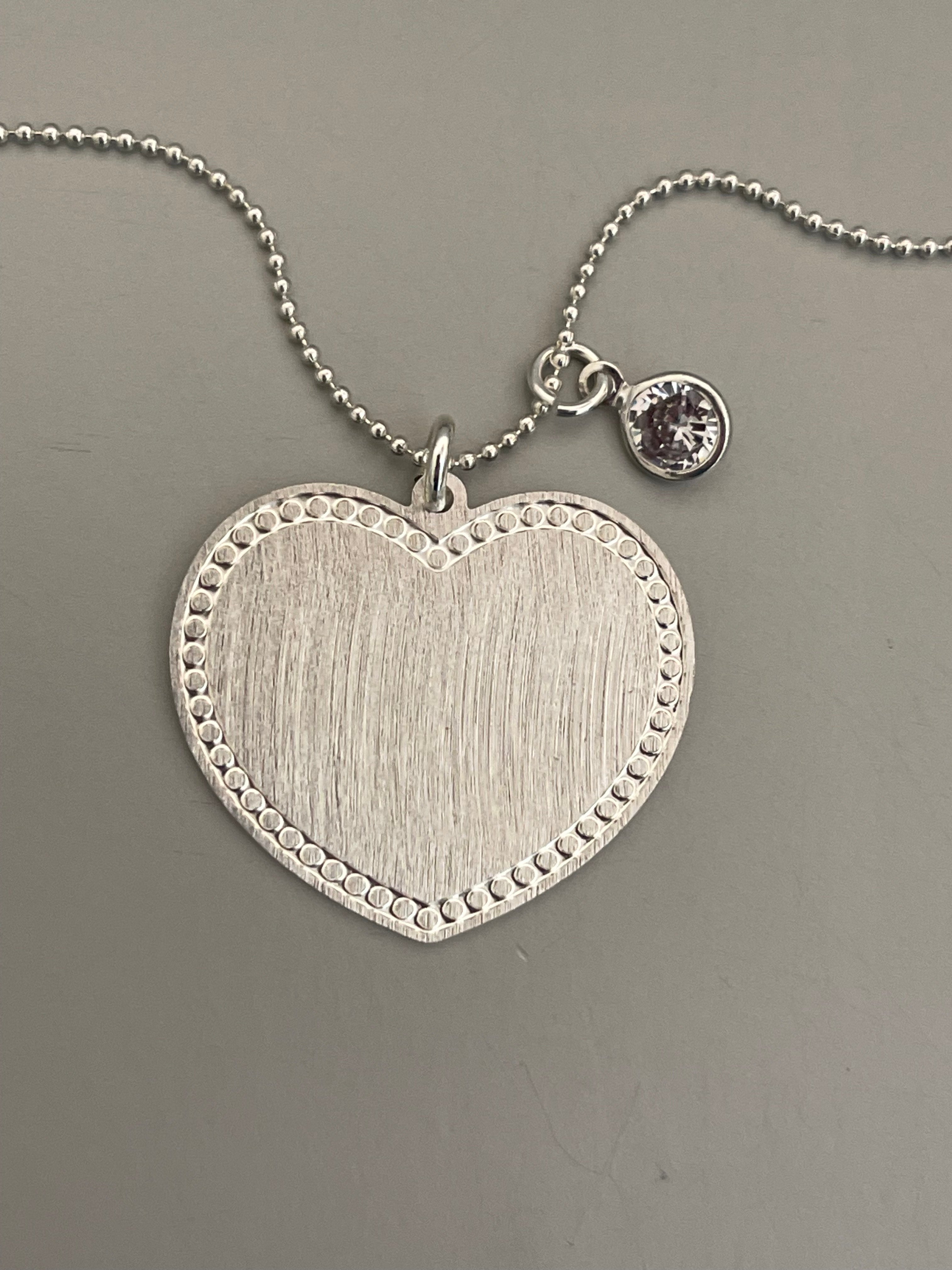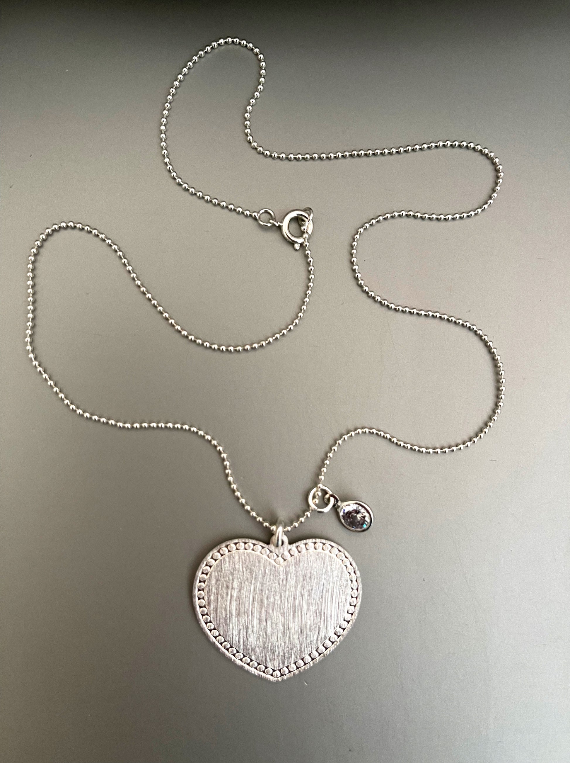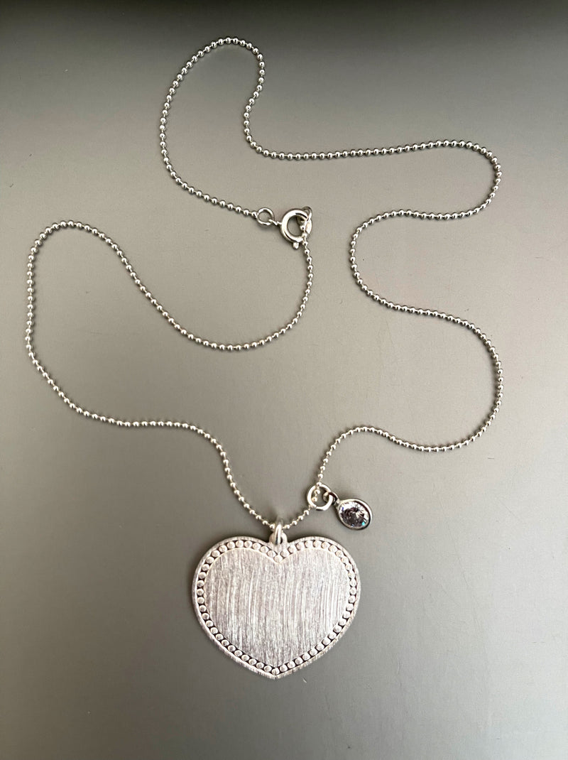 Collar Hippie Chic corto bañado en plata con precioso corazon, detalle en su contorno y punto de luz.