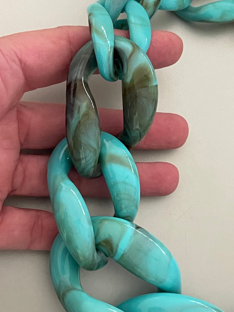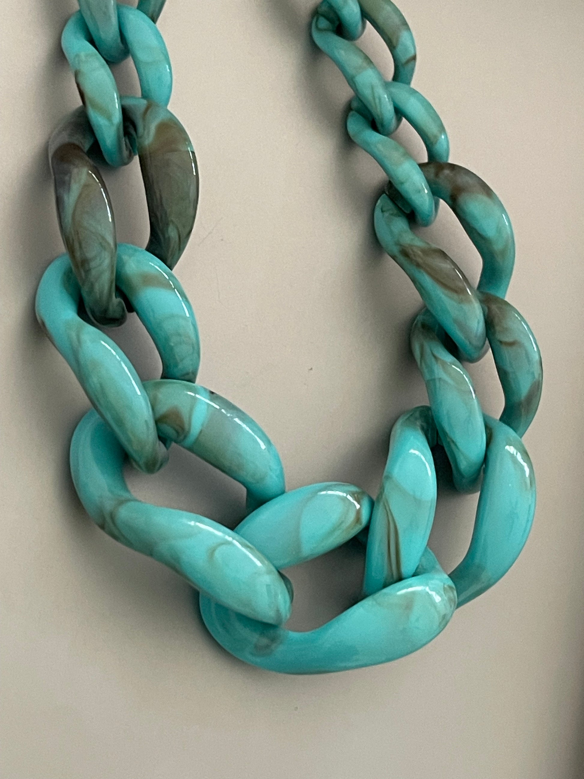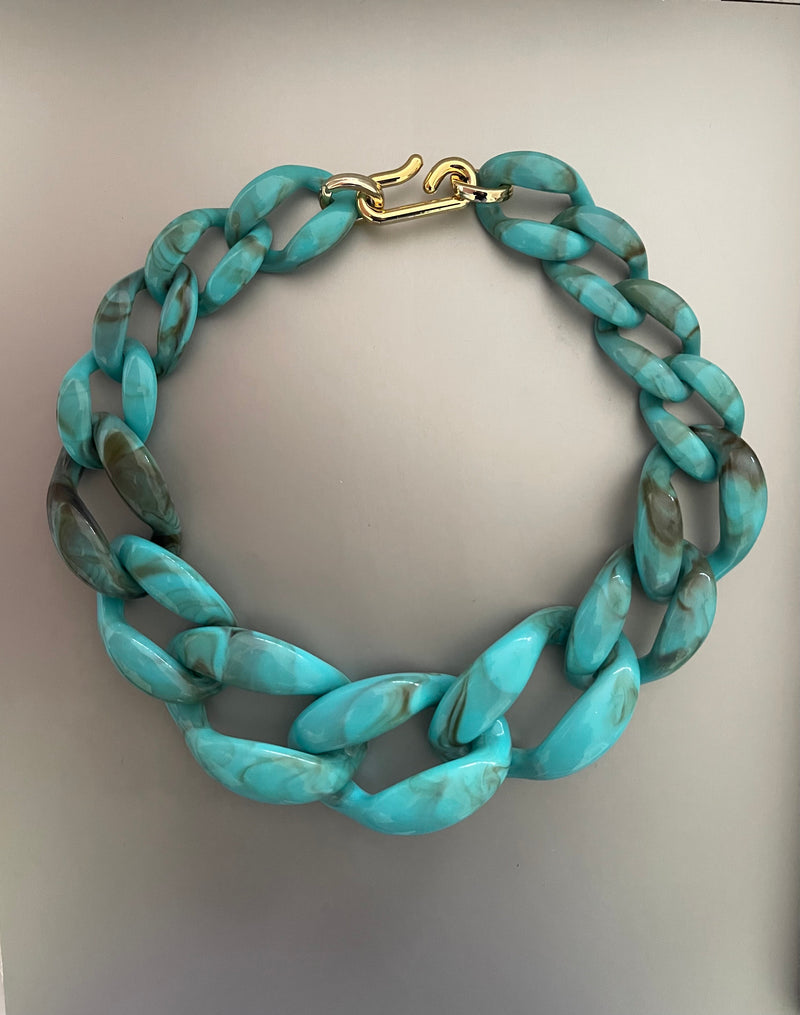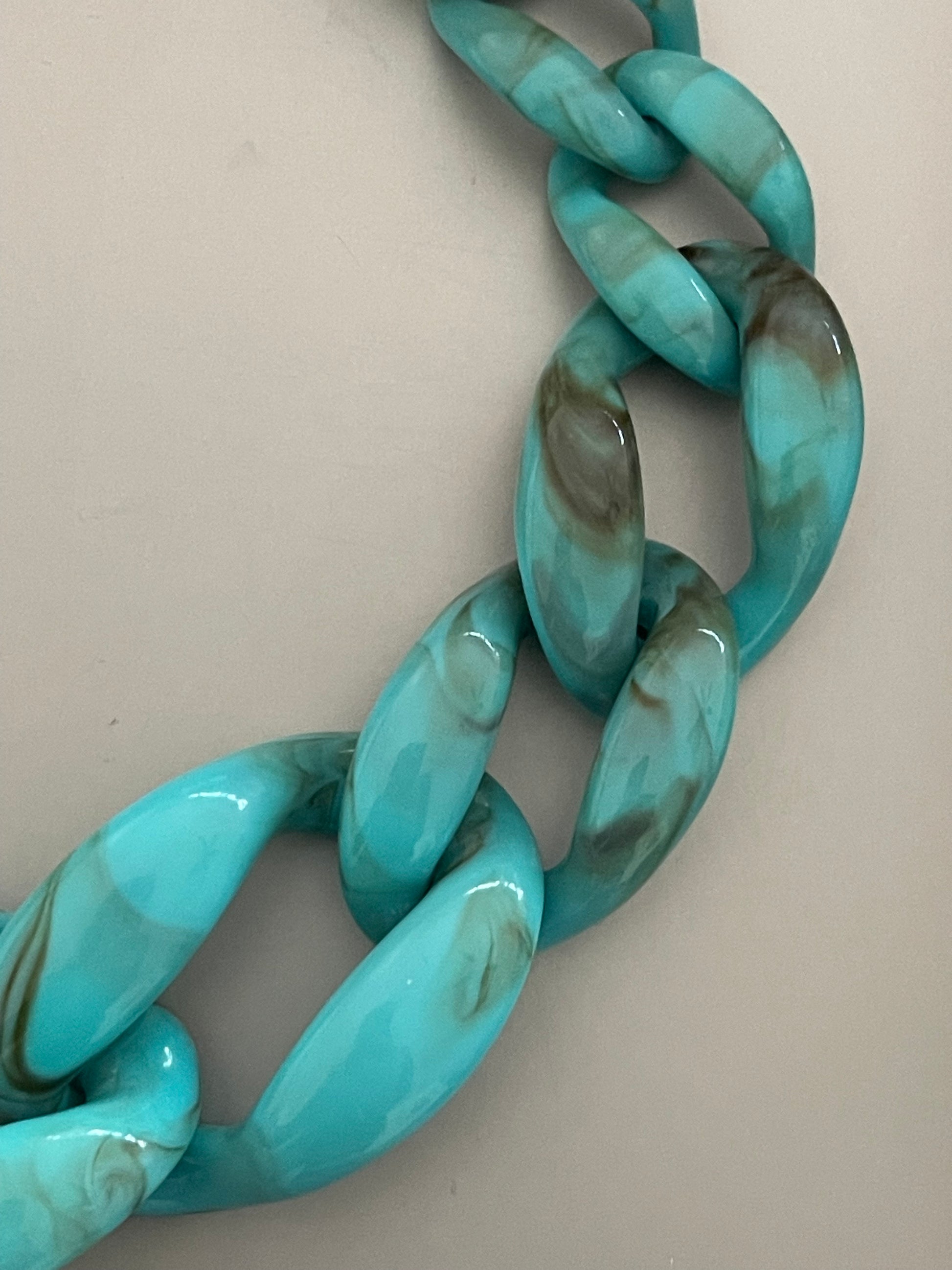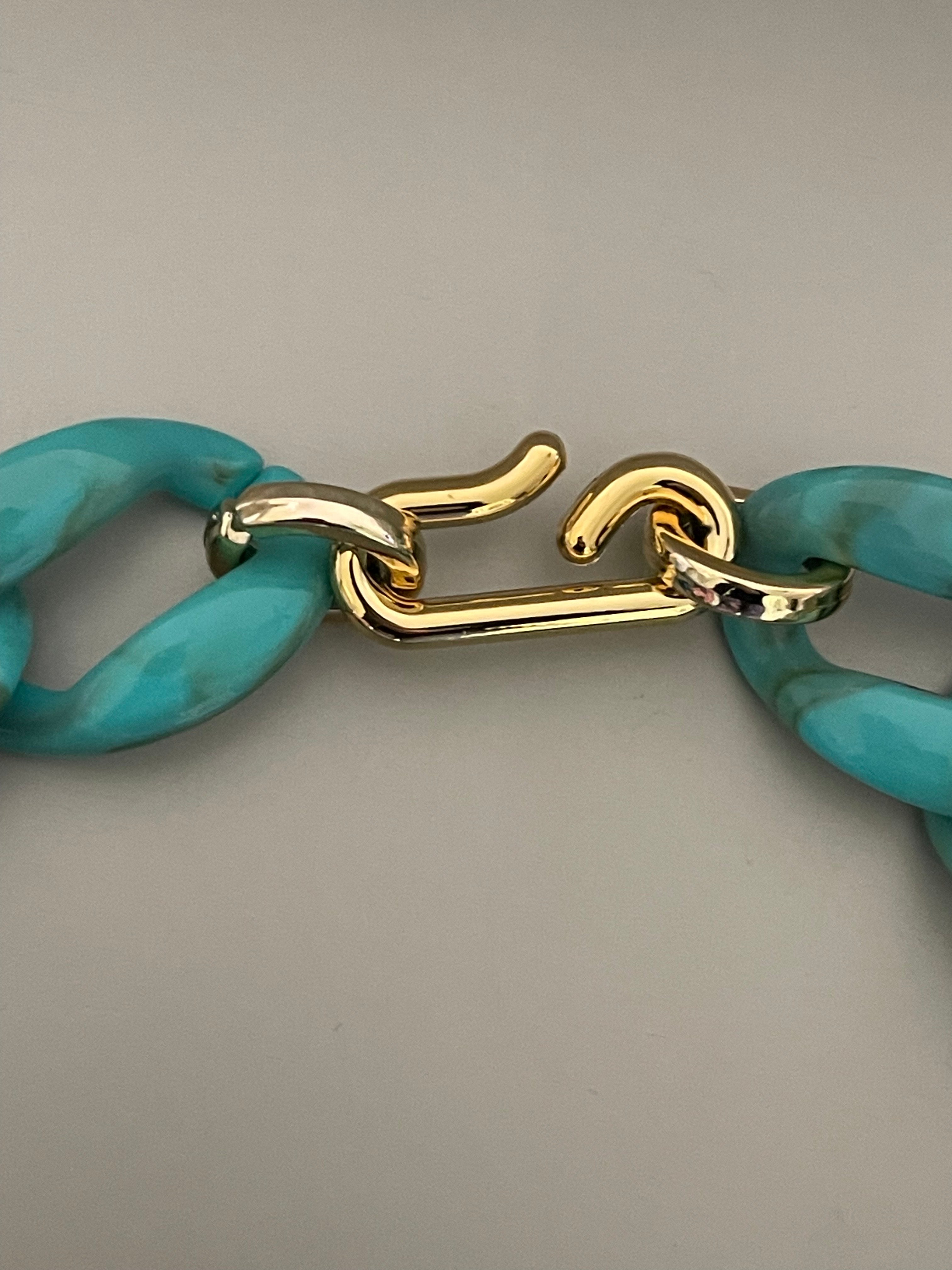 Collar Hippie Chic corto de acrilico en alegres tonos turquesa y broche dorado.