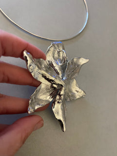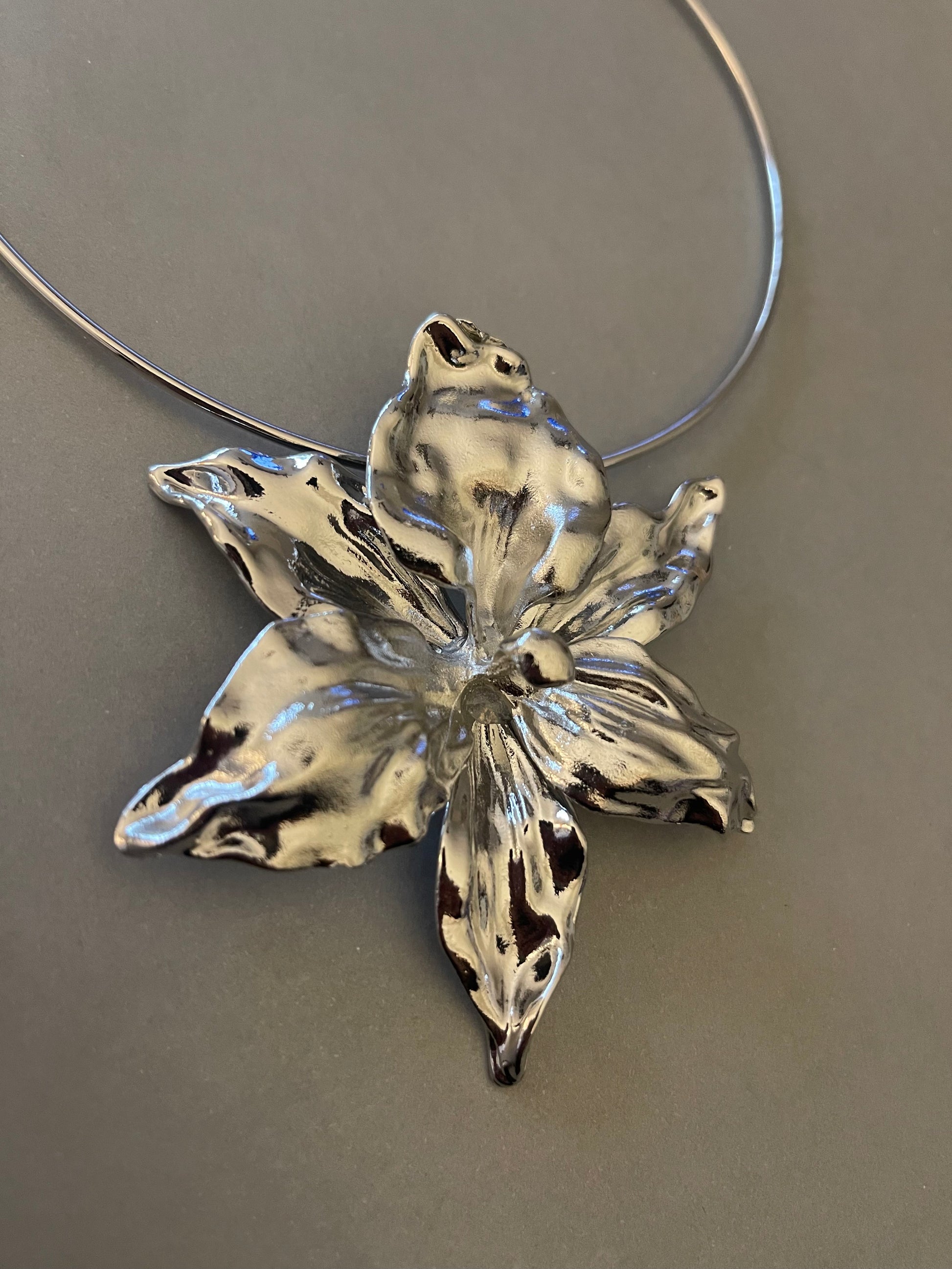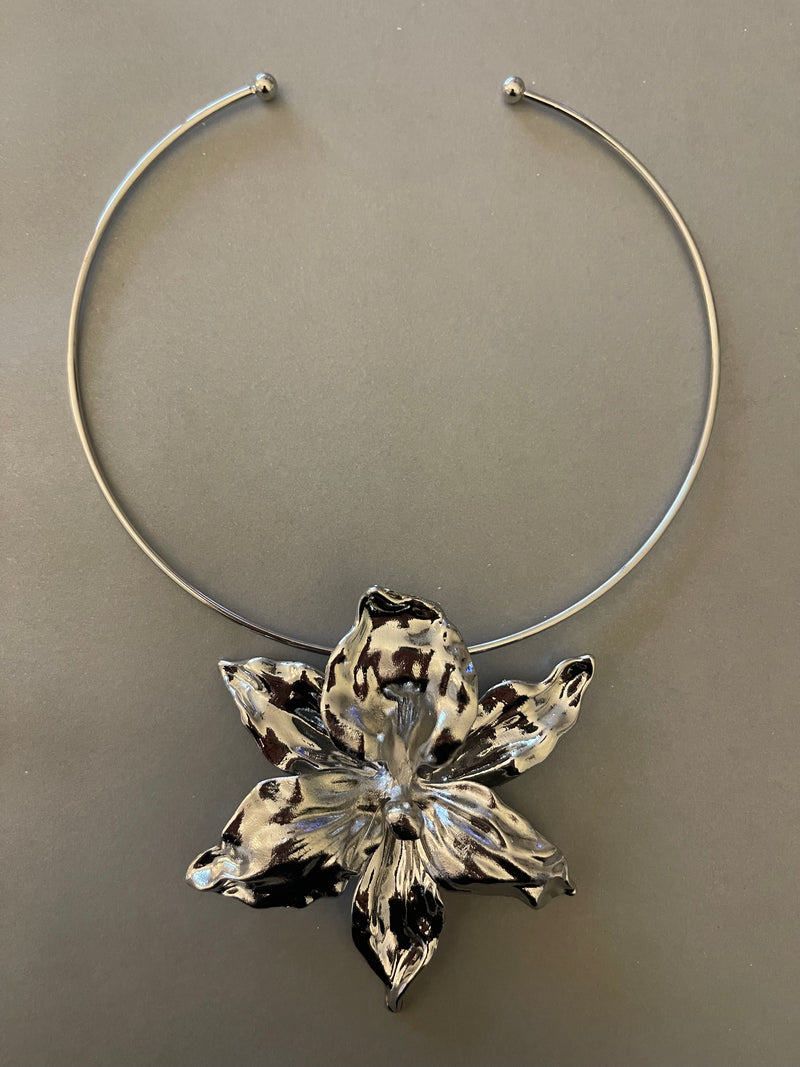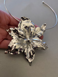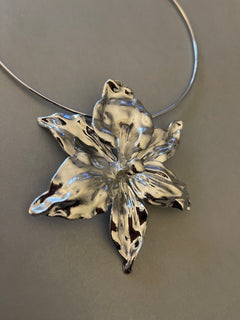 Collar Hippie Chic plateado con espectacular flor en el centro.