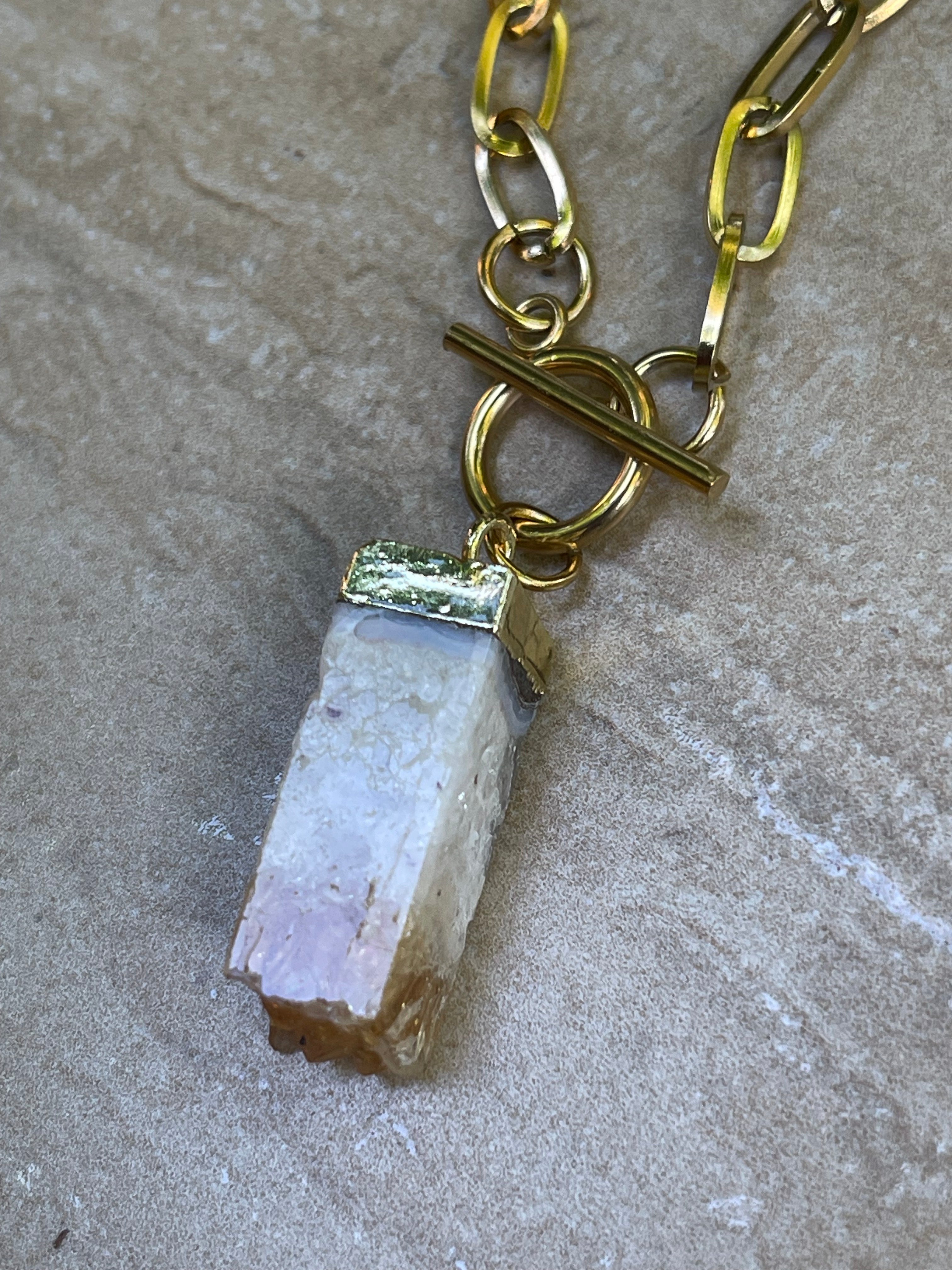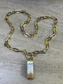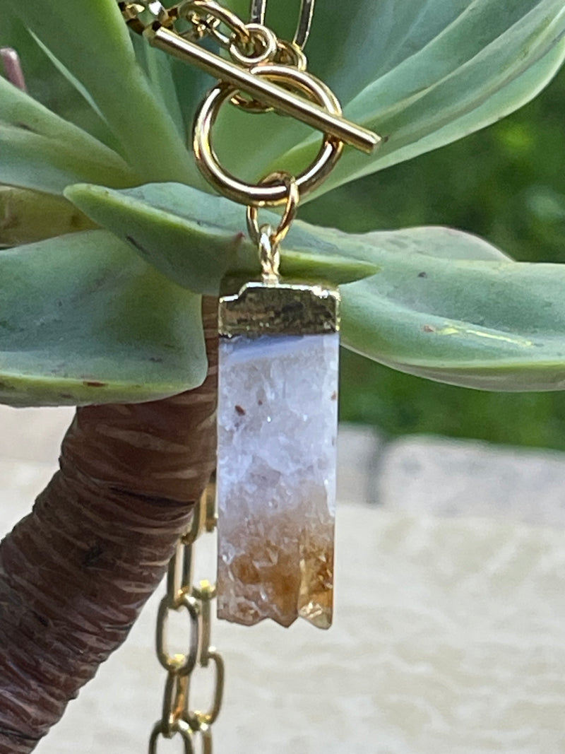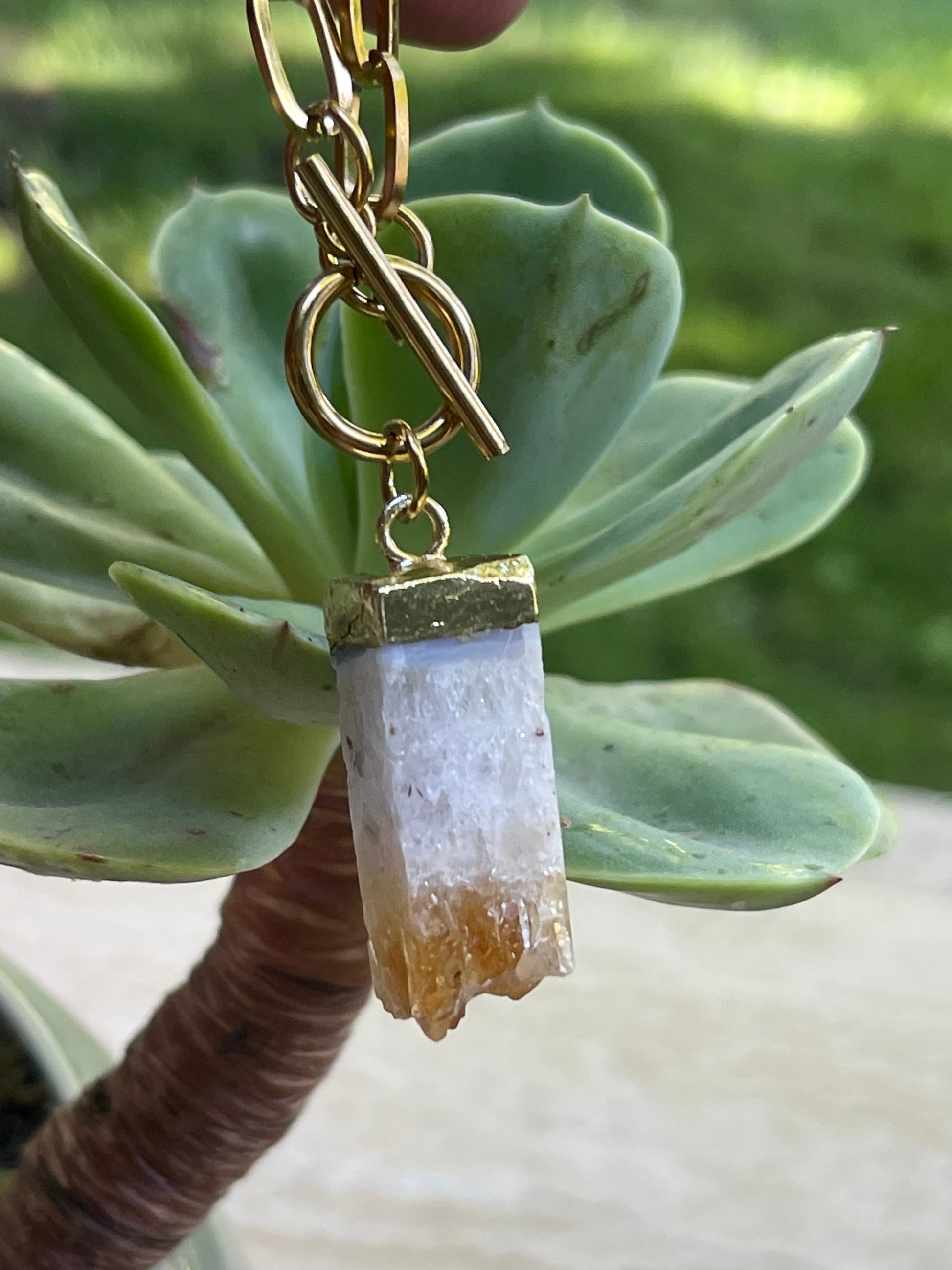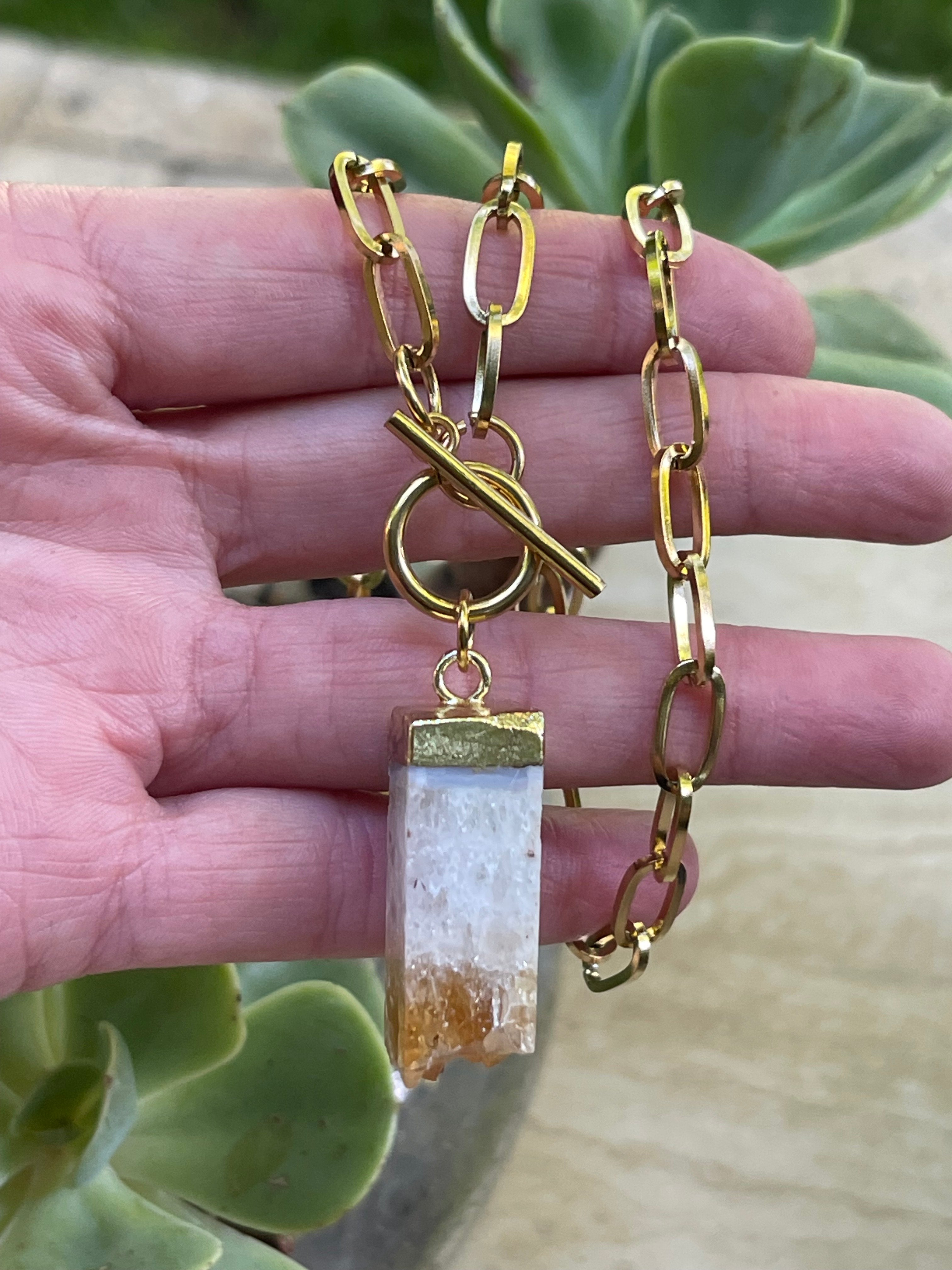 Collar Hippie Chic corto de acero inoxidable dorado con broche OT y precioso colgante de Citrino natural.