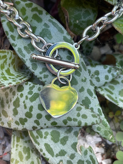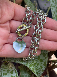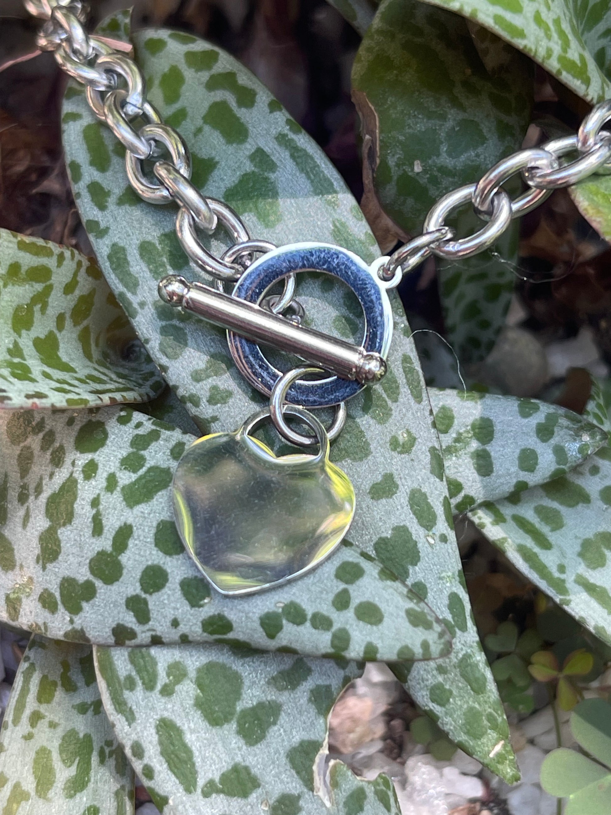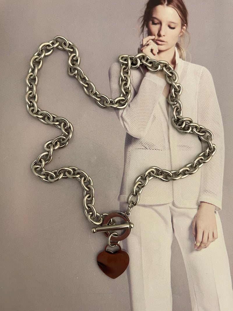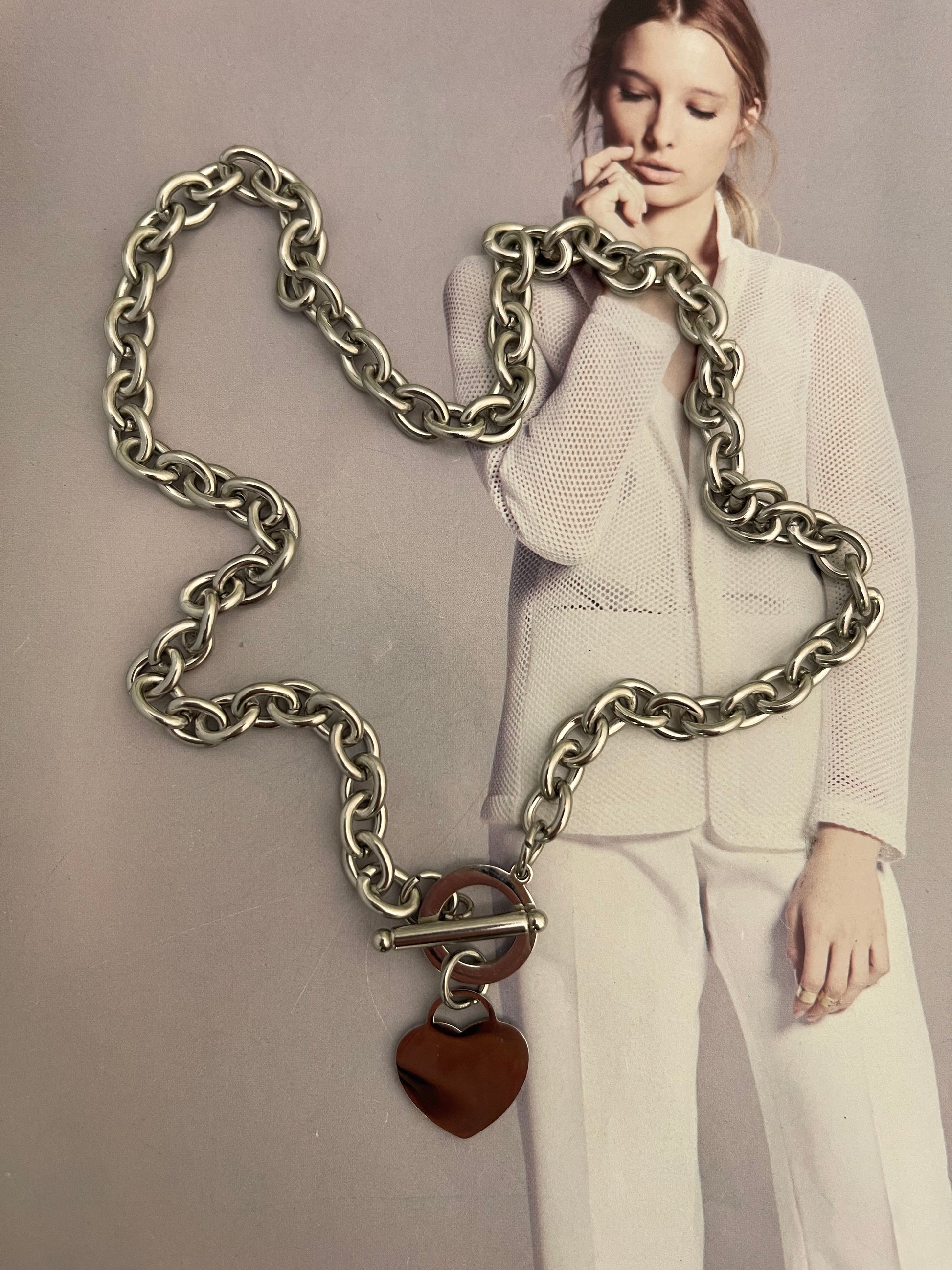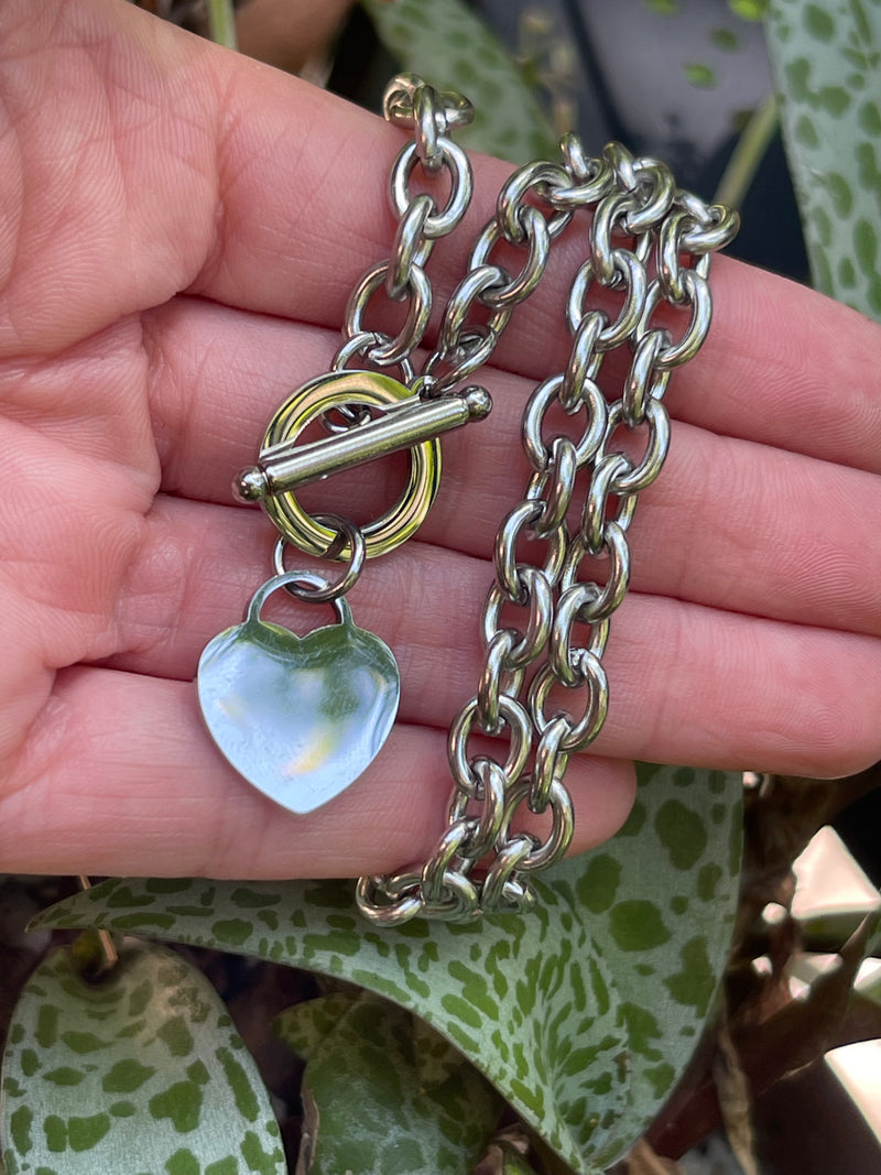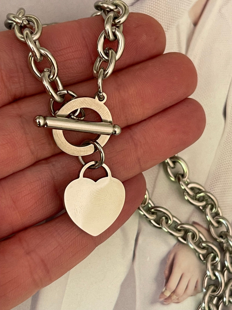 Collar Hippie Chic corto de acero inoxidable plateado con precioso corazon y broche OT.