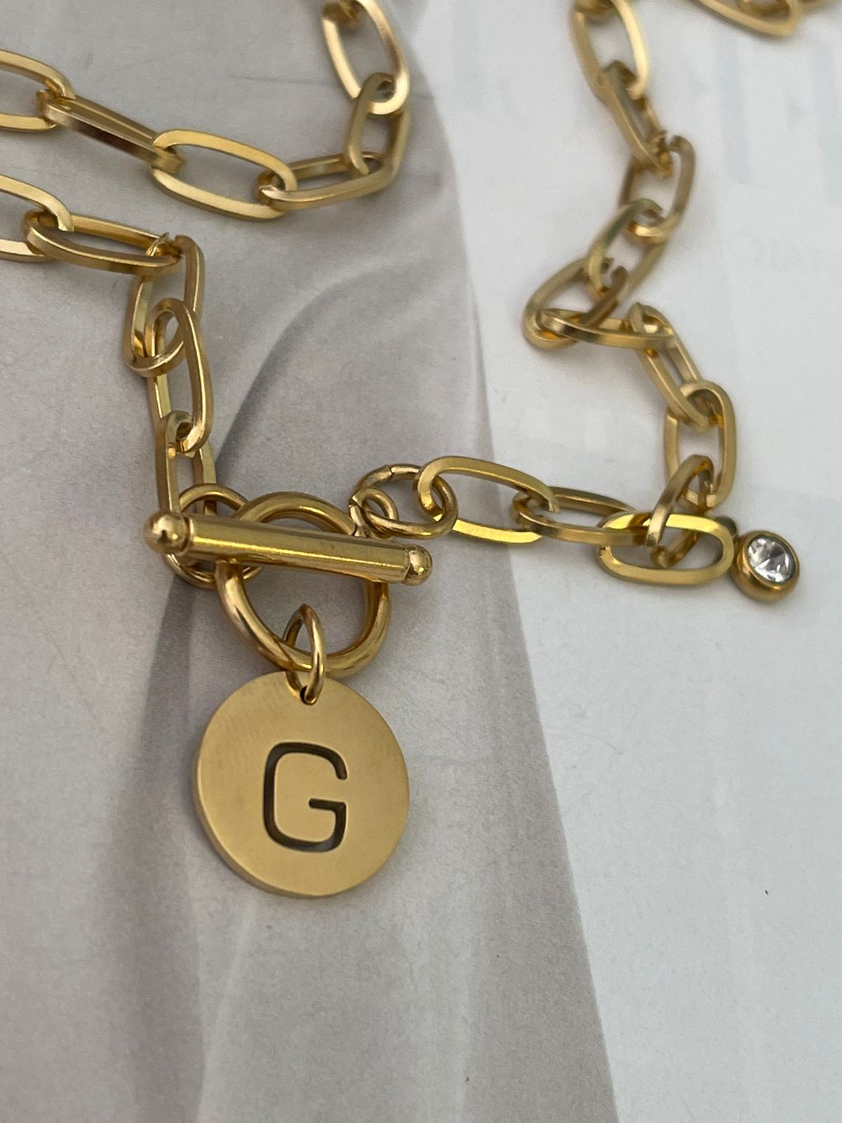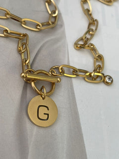 Collar Hippie Chic de cadena de acero inoxidable dorado, Letra G