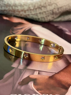 Pulsera Hippie Chic de acero in oxidable dorado y precioso calada de entrellas.