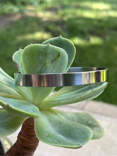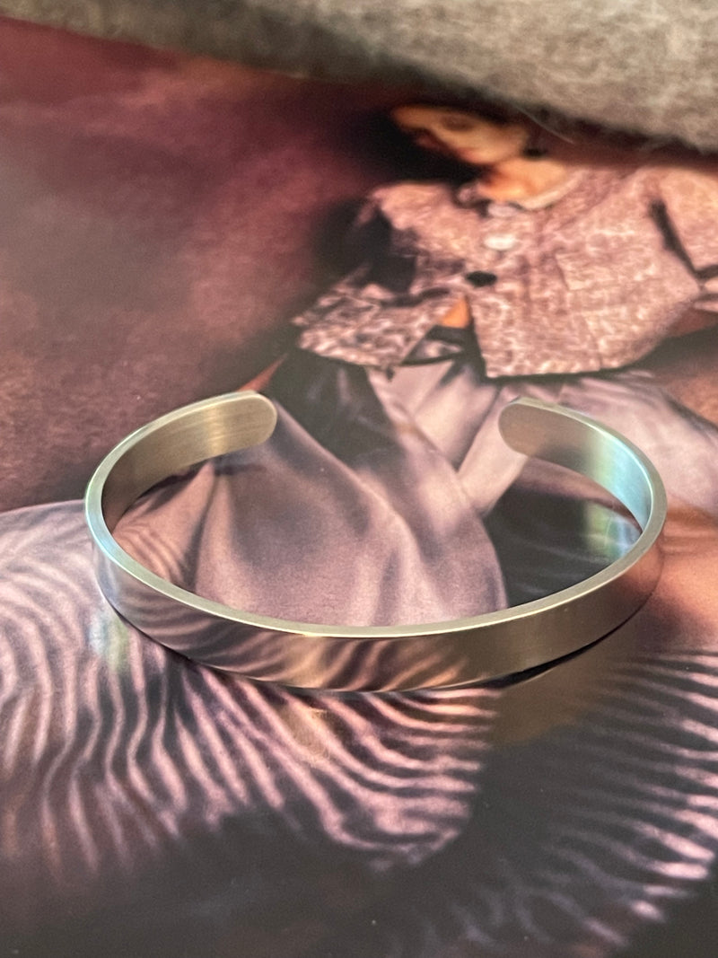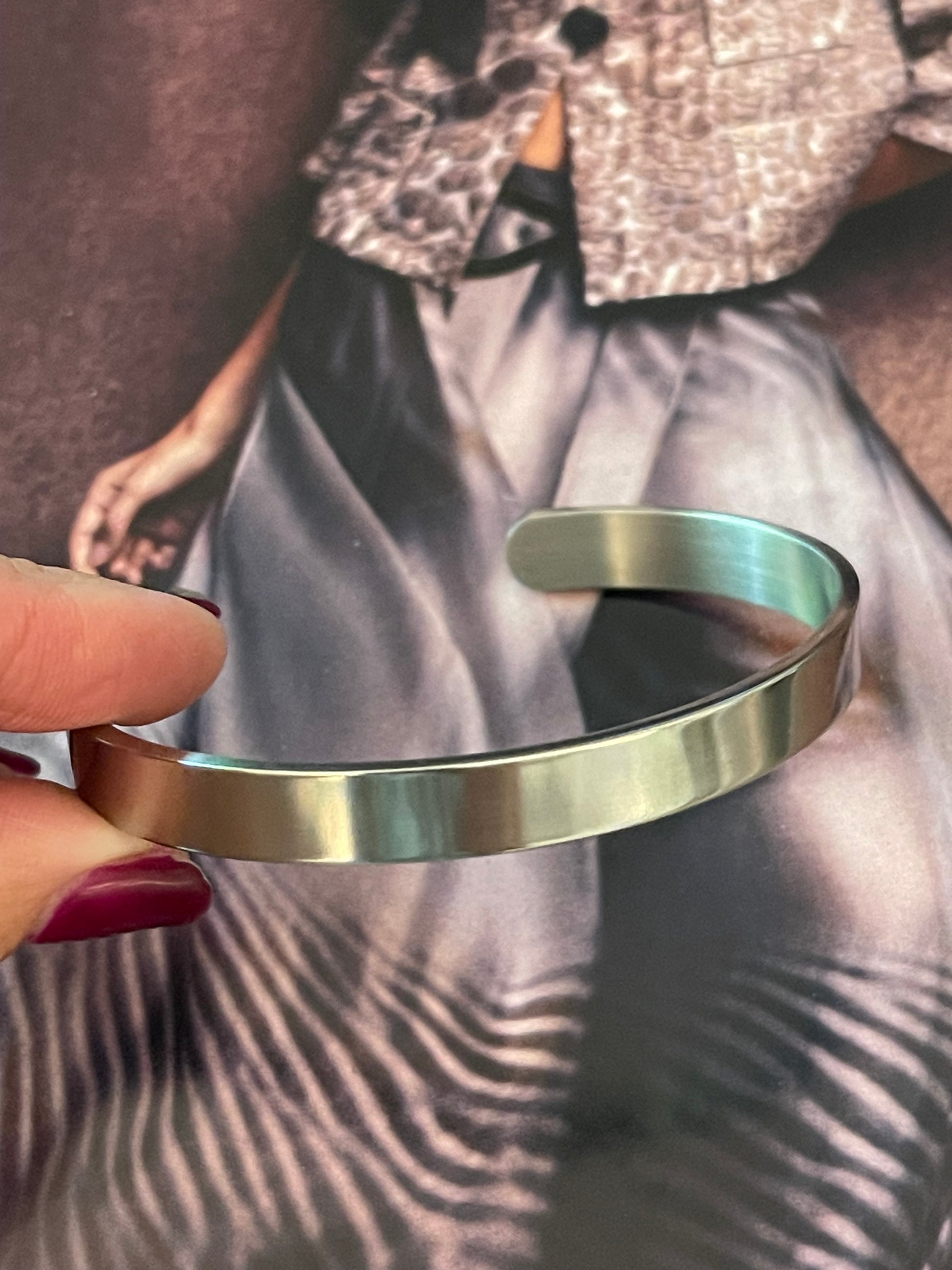 Pulsera Hippie Chic de acero inoxidable plateado en precioso diseño tipo esclava de tamaño mediano.