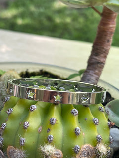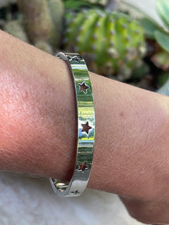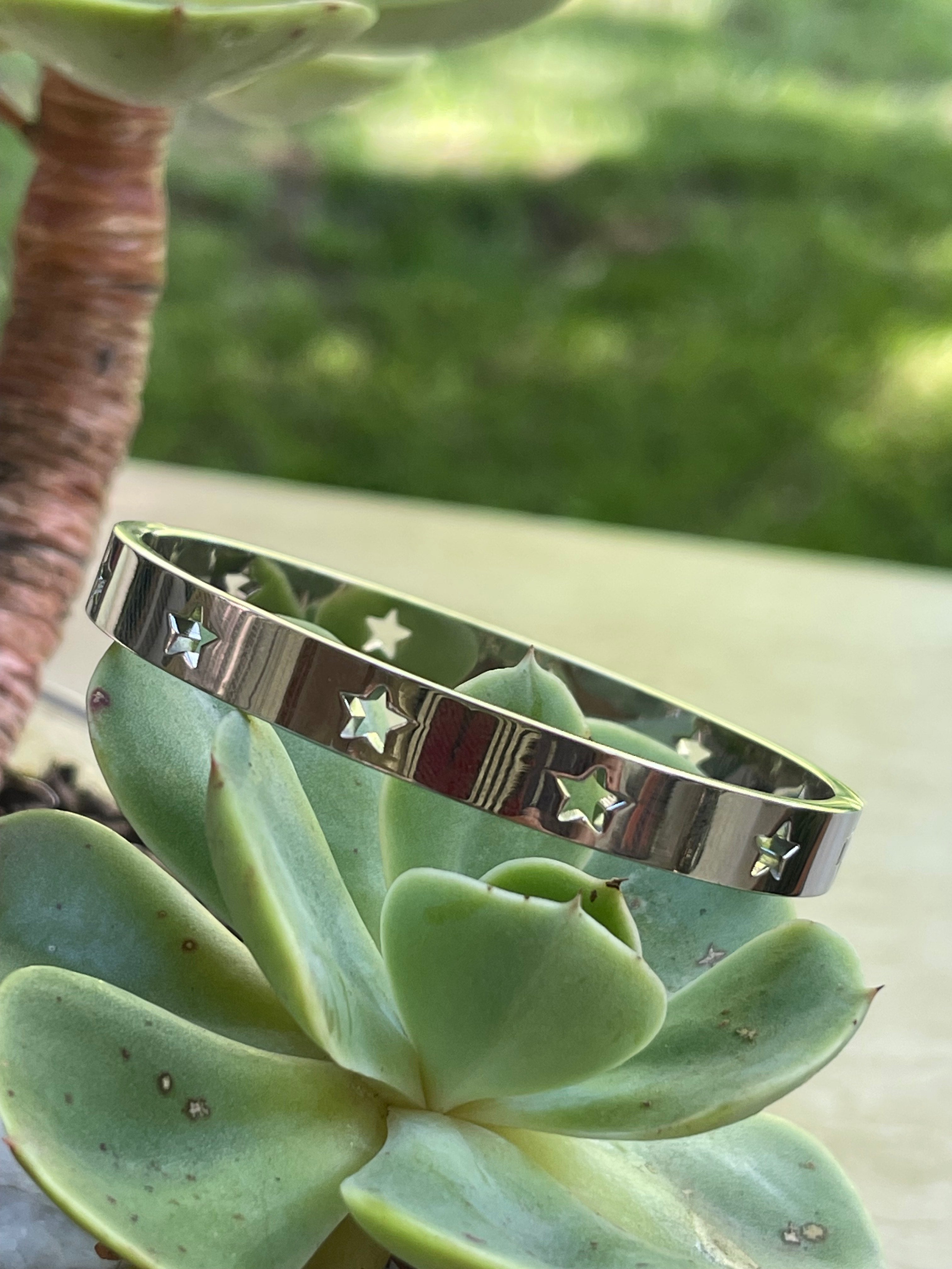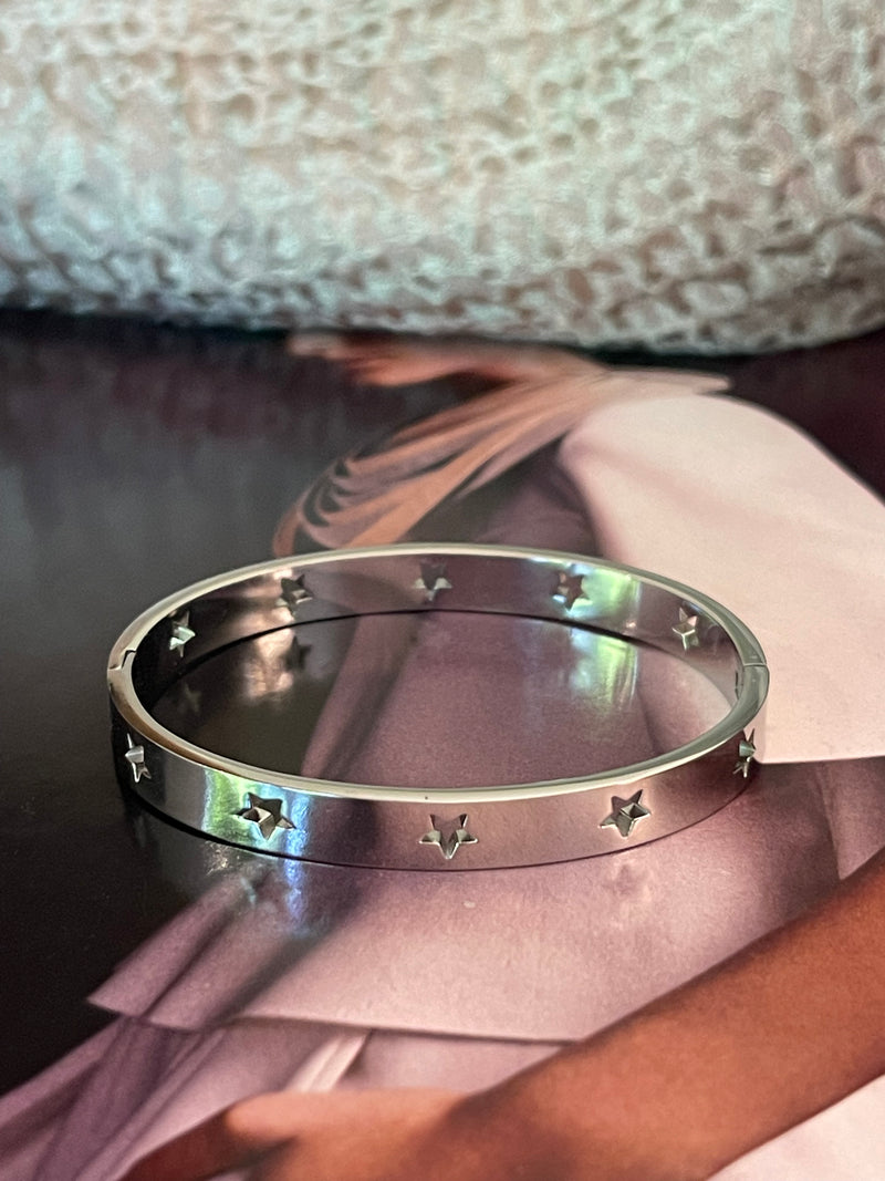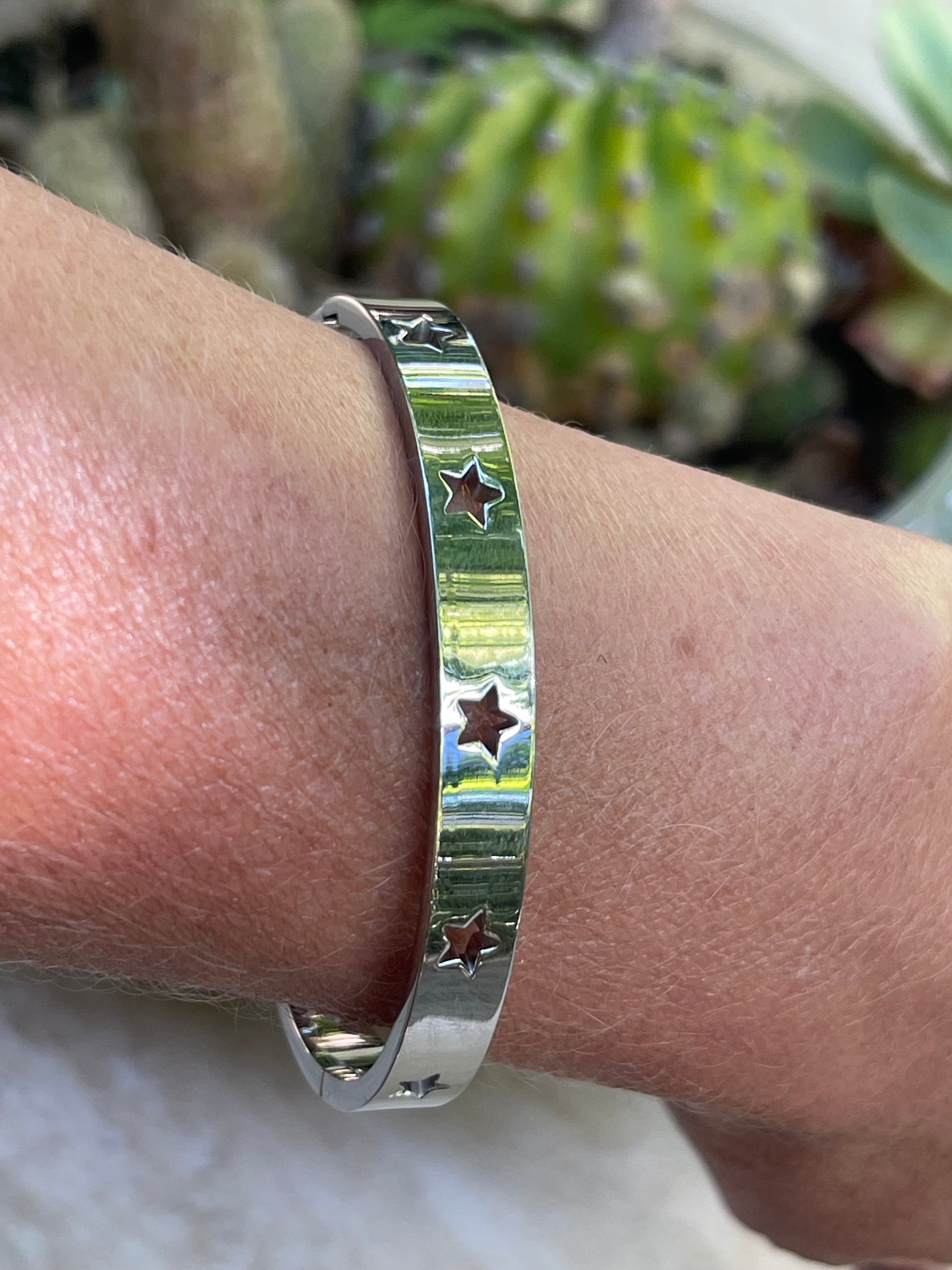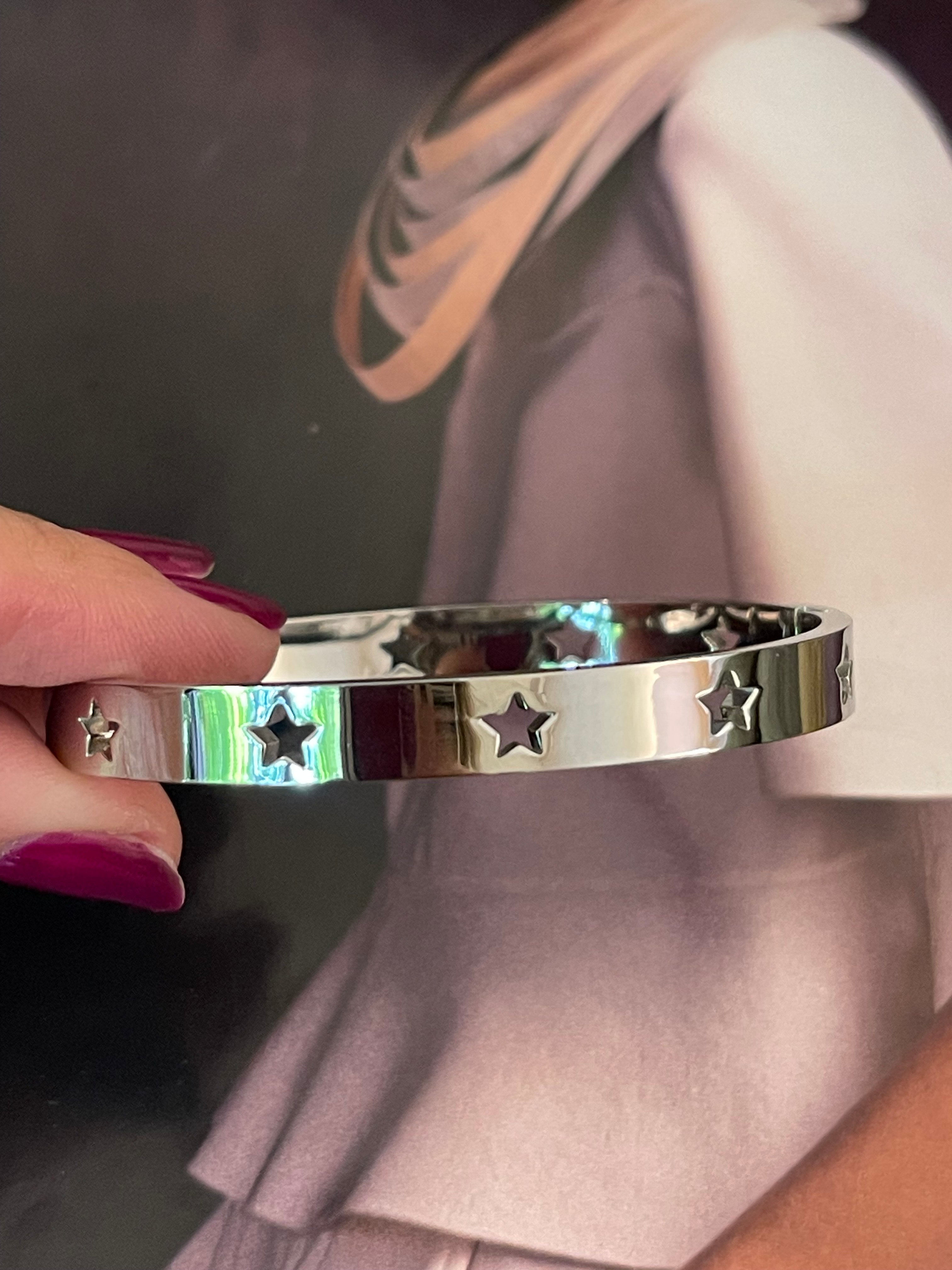Pulsera Hippie Chic de acero inoxidable plateado y precioso calado de entrellas.