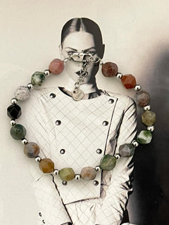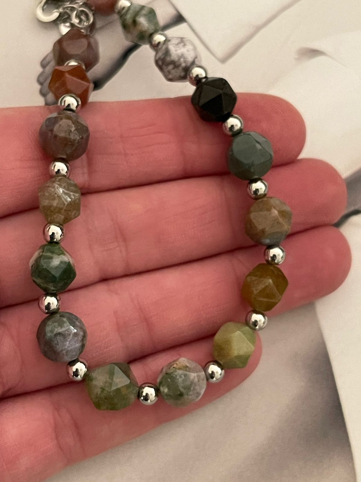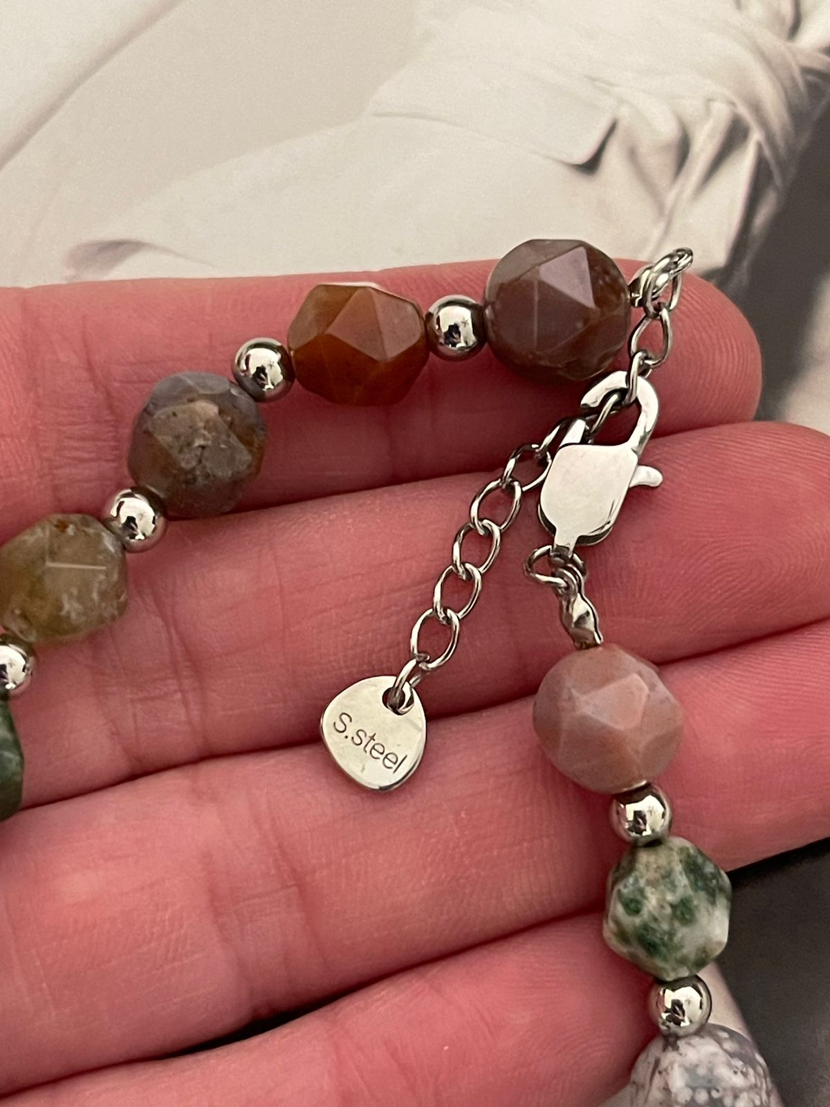 Pulsera Hippie Chic de maravillosas piedras naturales y base de acero inoxidable plateado.