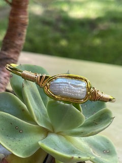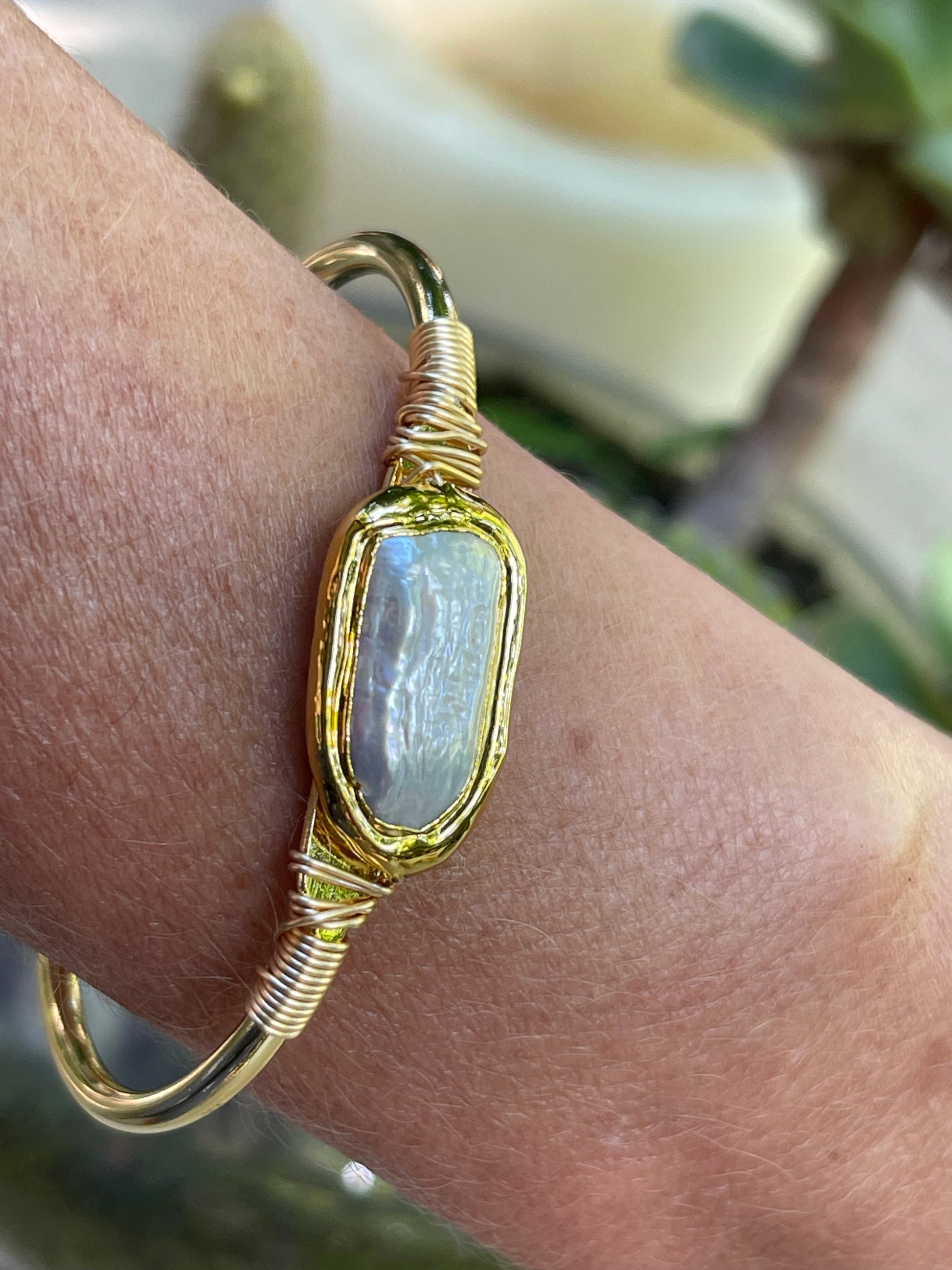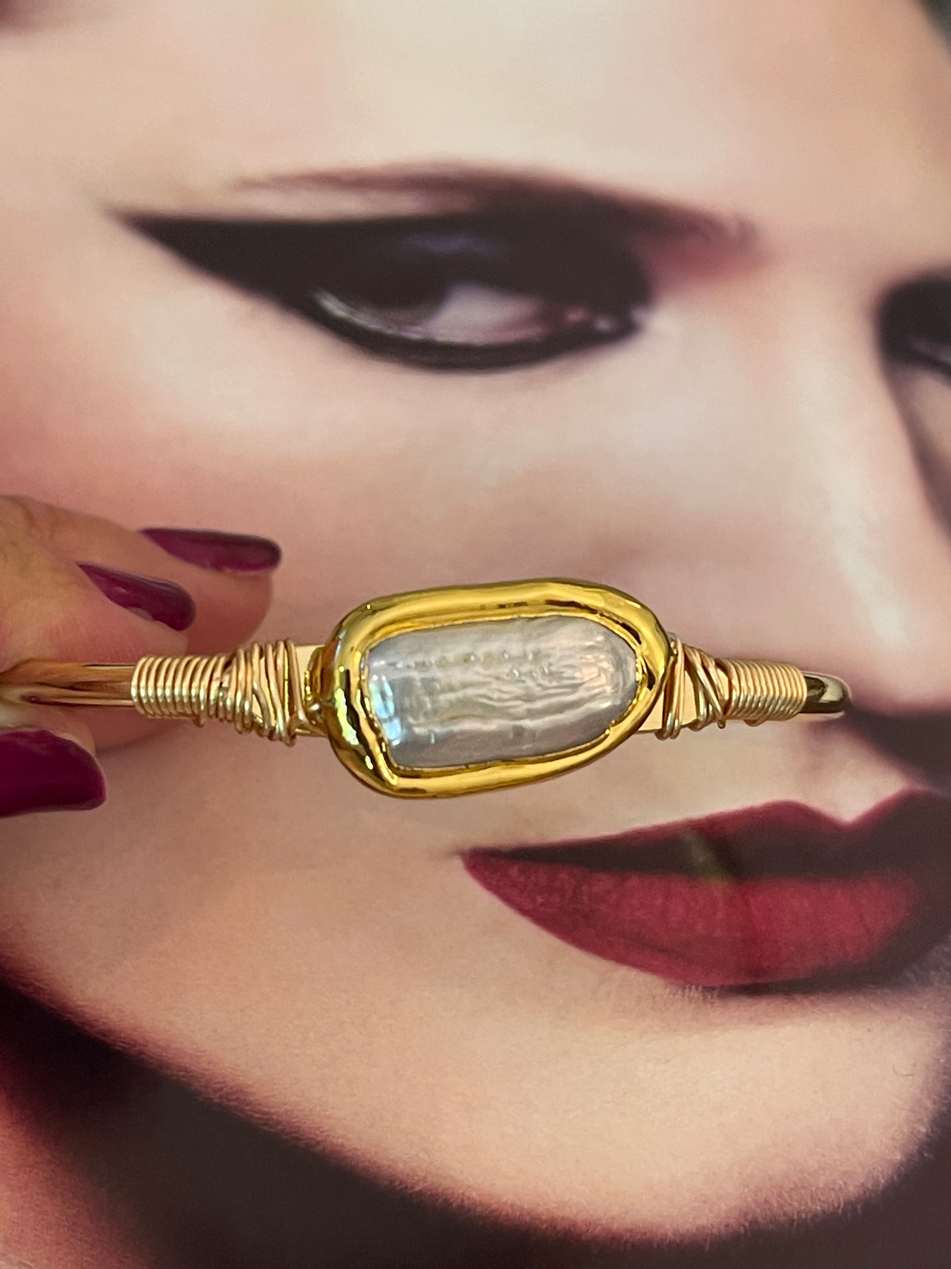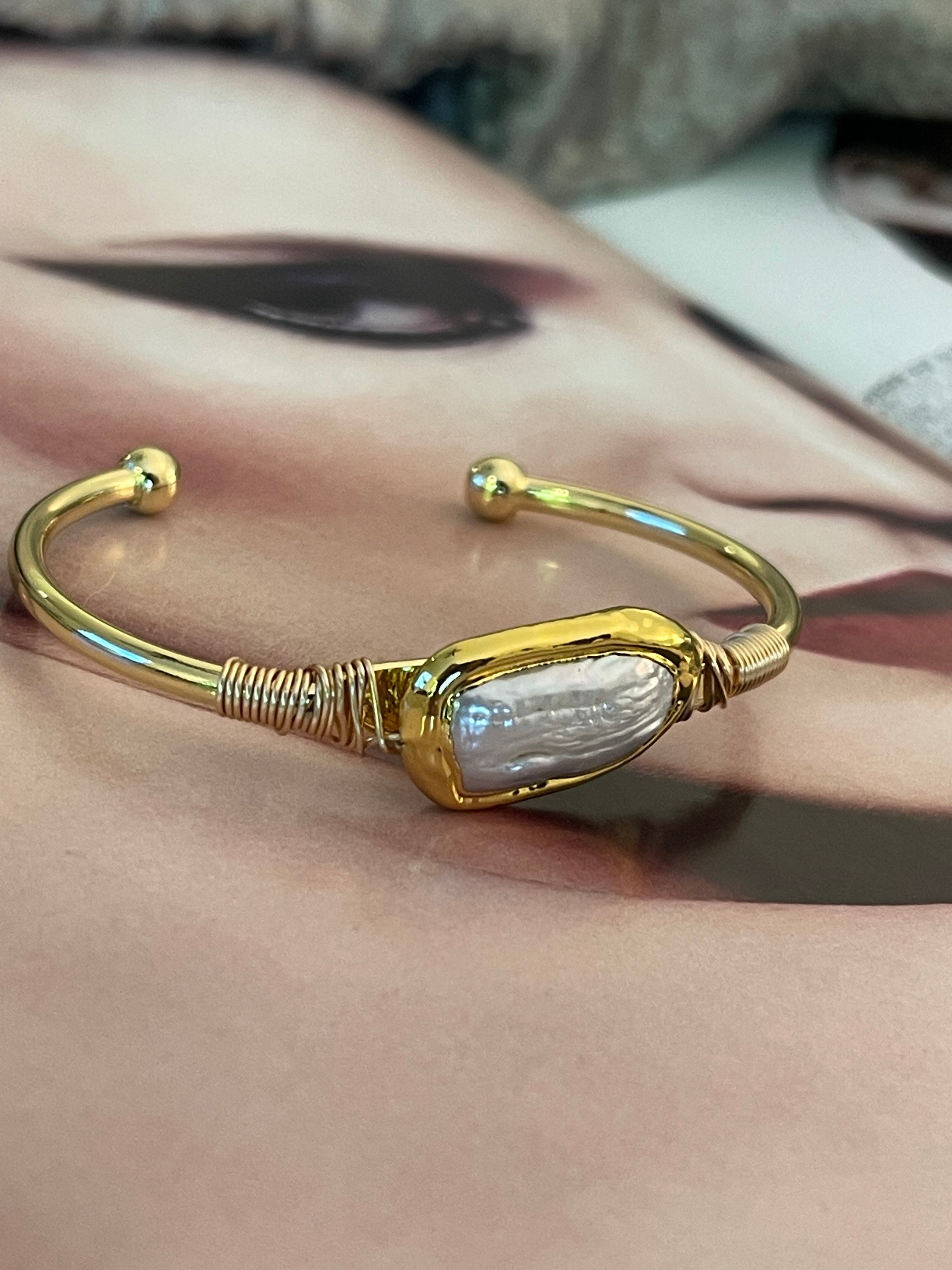 Pulsera Hippie Chic dorada con preciosa perla barroca blanca natural.