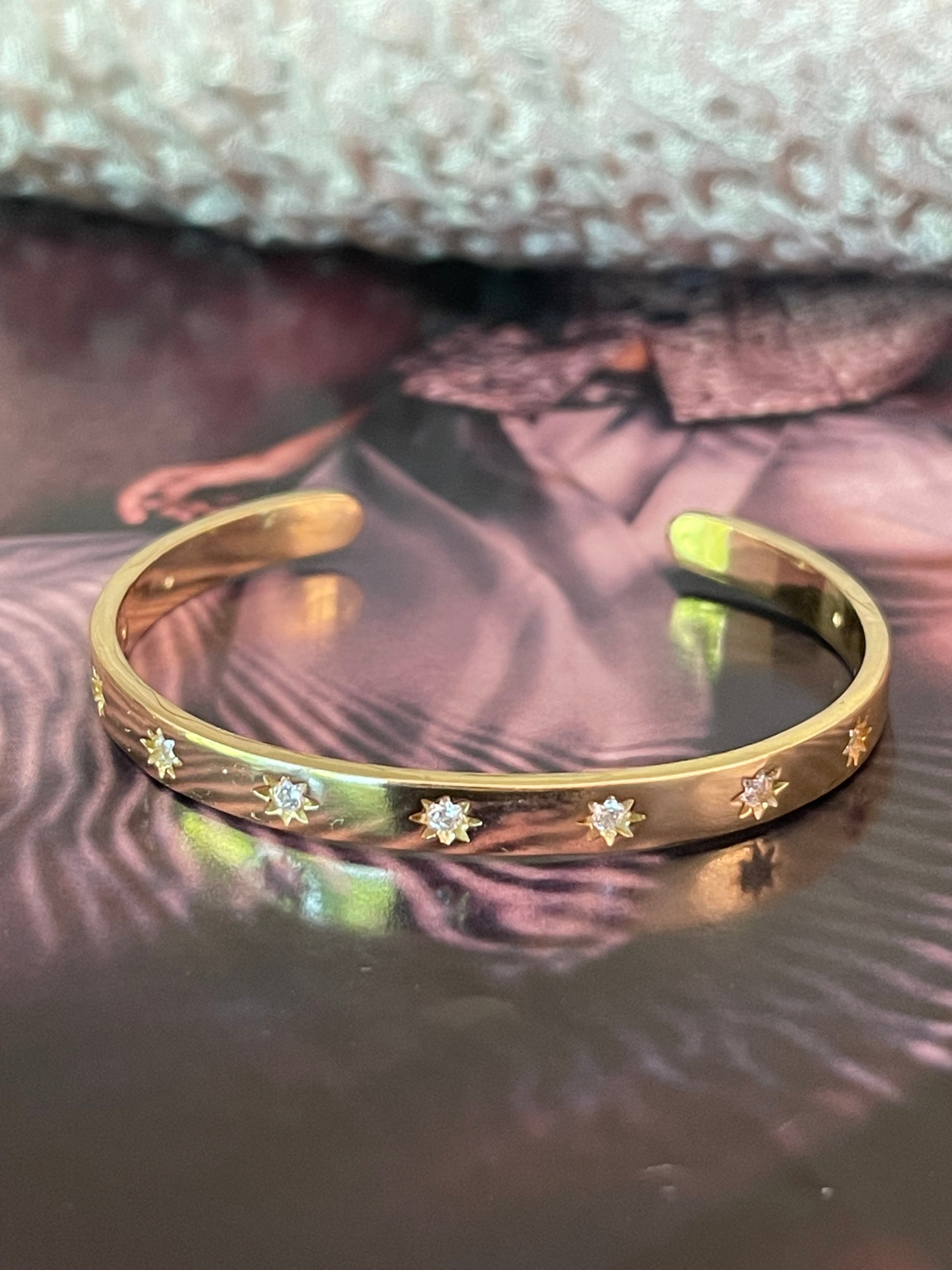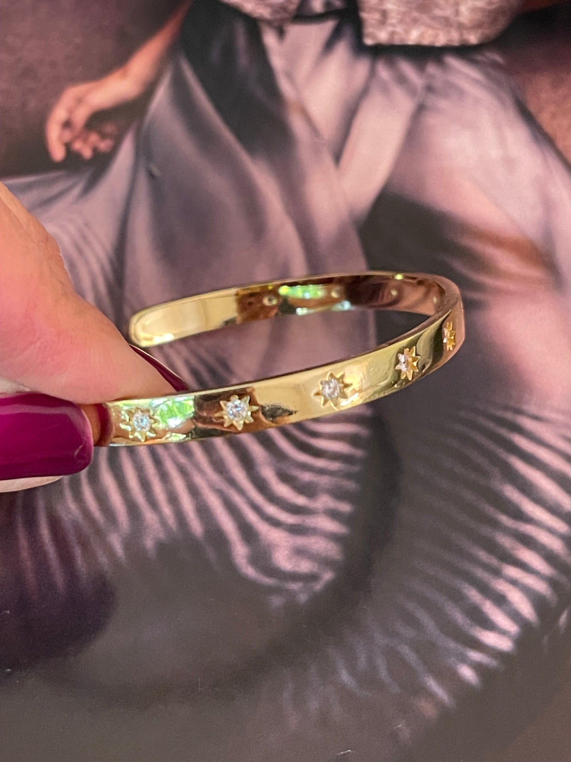 Pulsera Hippie Chic dorada y preciosos circones de estrella.