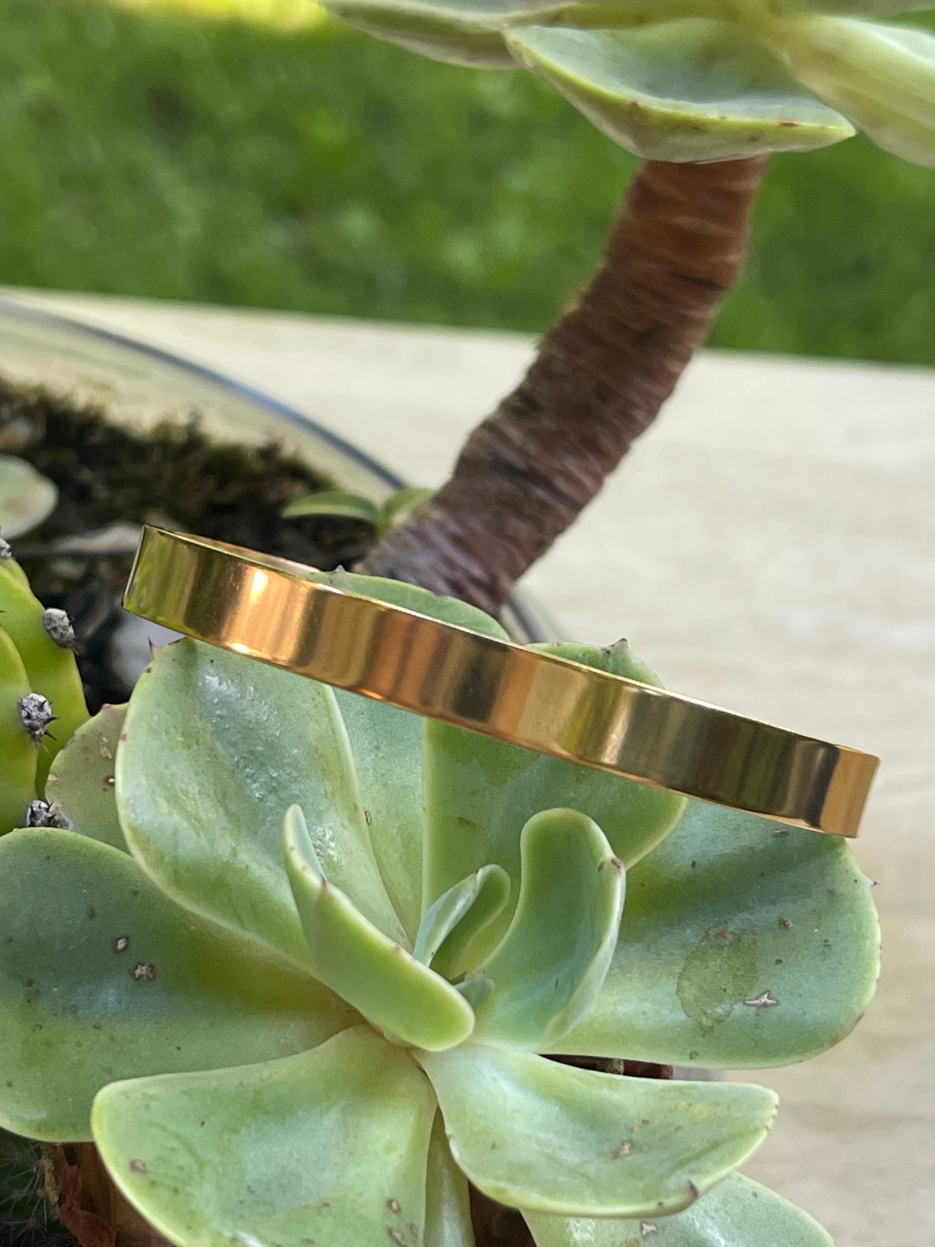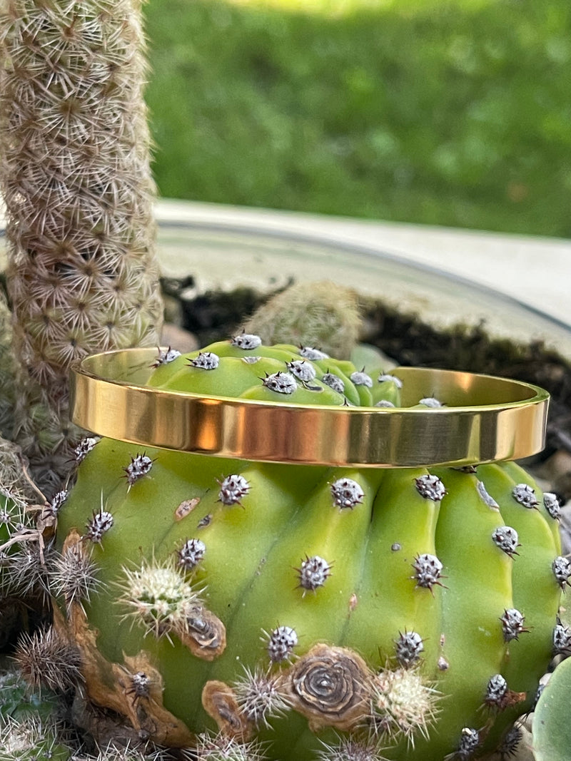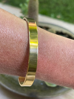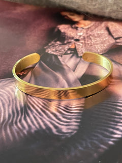 Pulsera Hippie Chic en acero inoxidable dorado en elegante diseño tipo esclava de tamaño mediano.