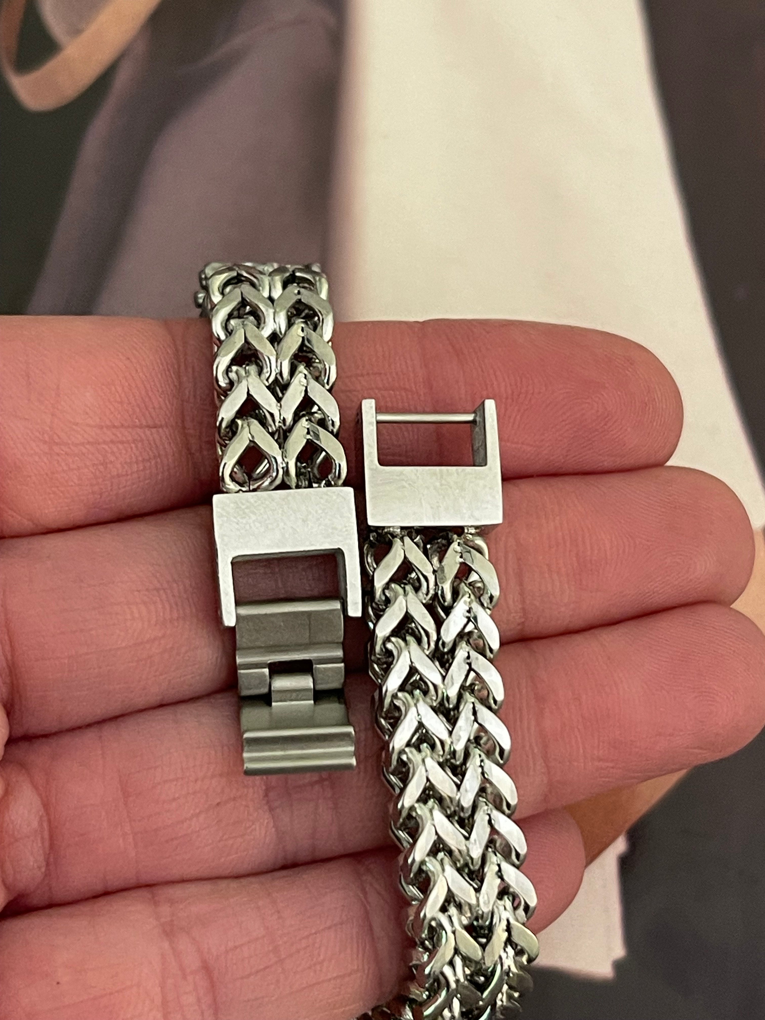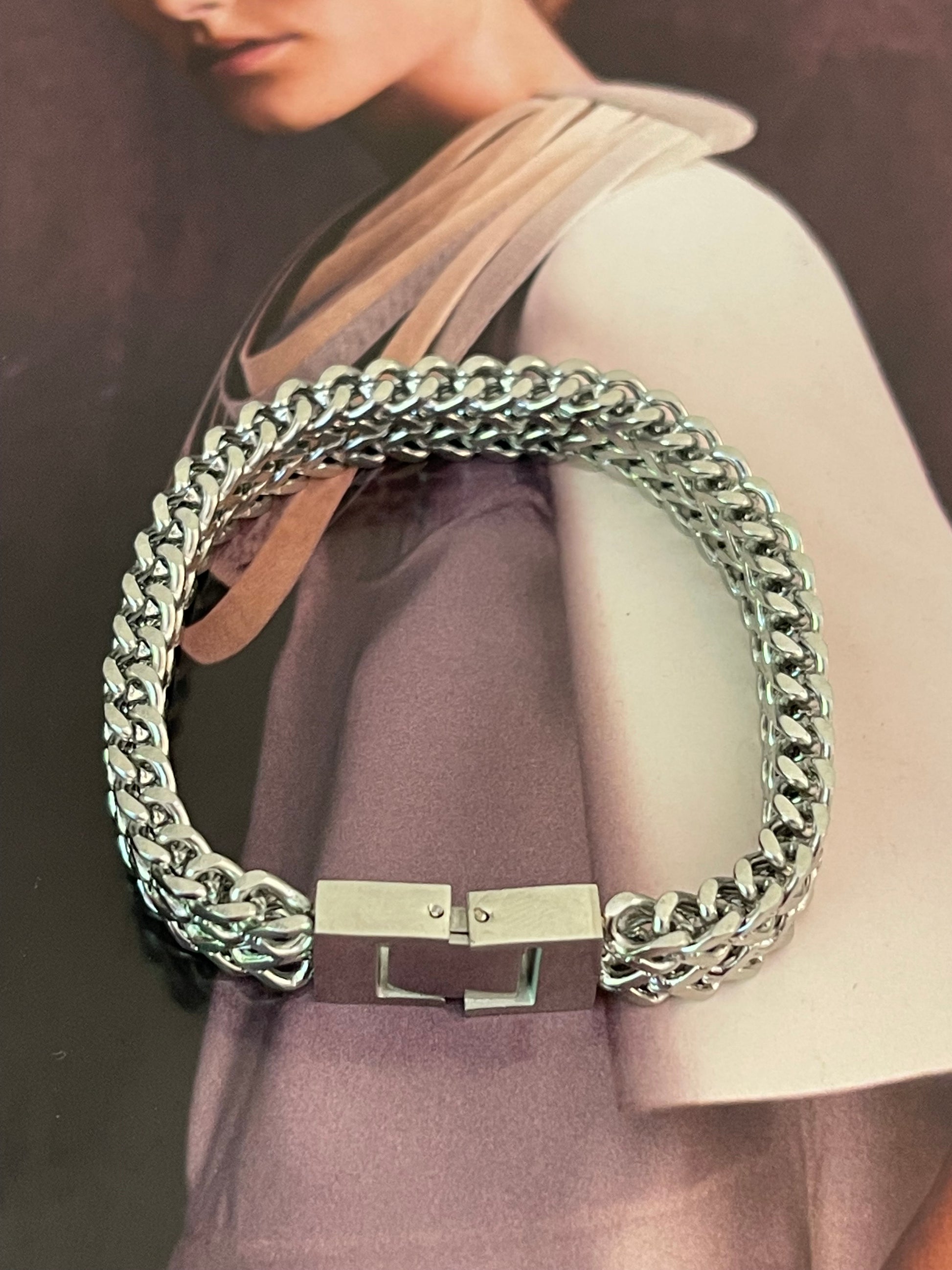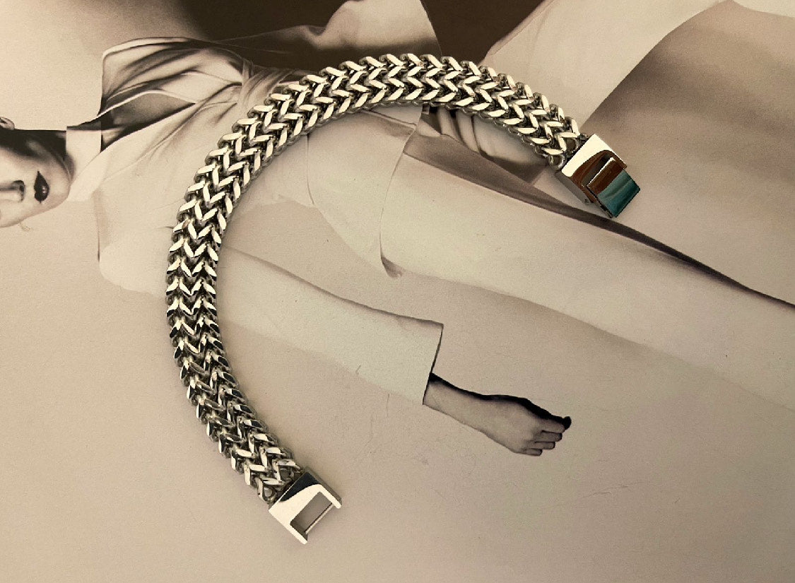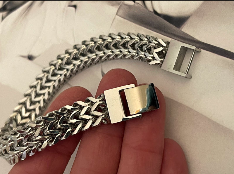Pulsera Hippie Chic en acero inoxidable plateado con precioso tejido tipo espiga.